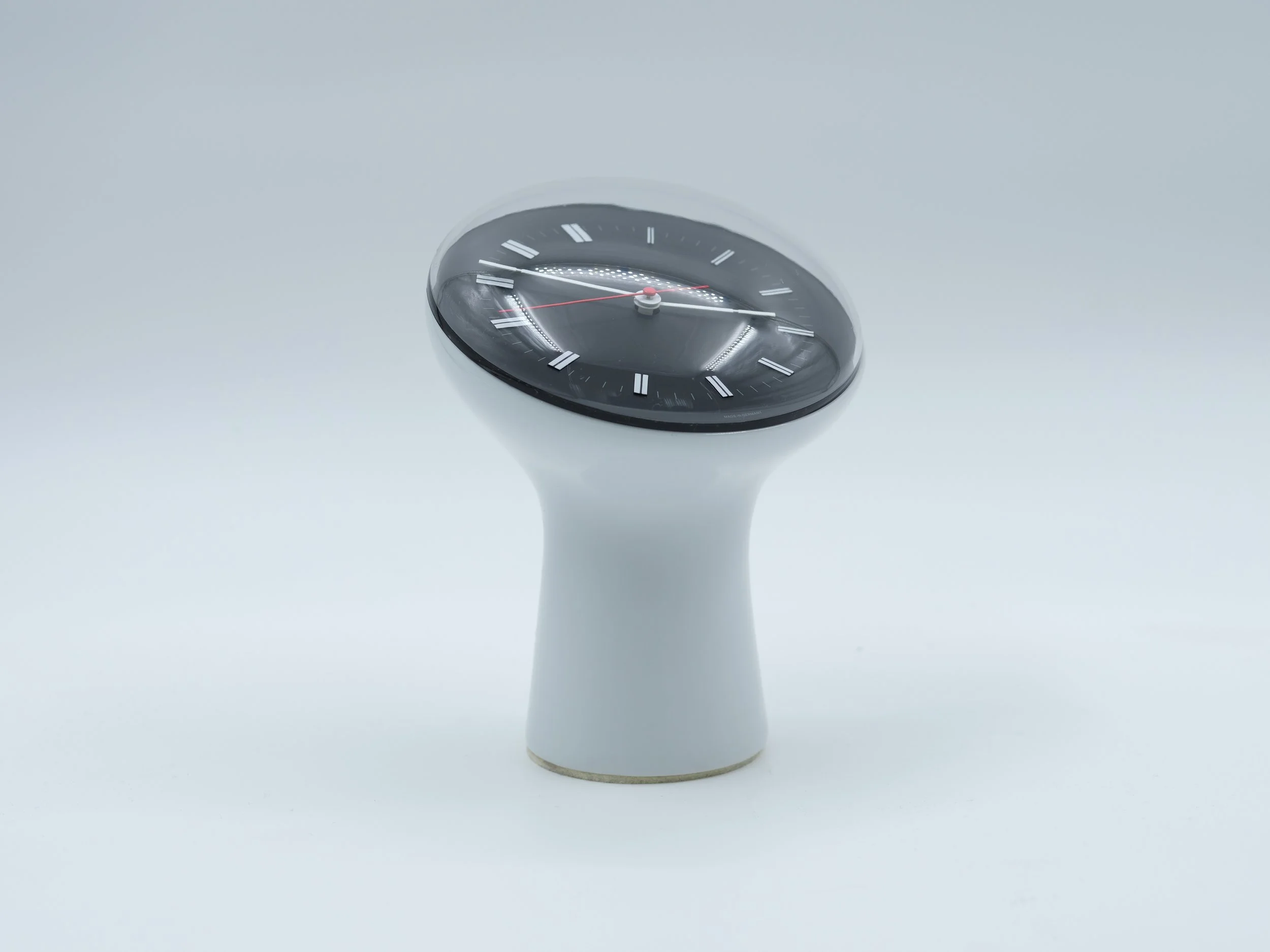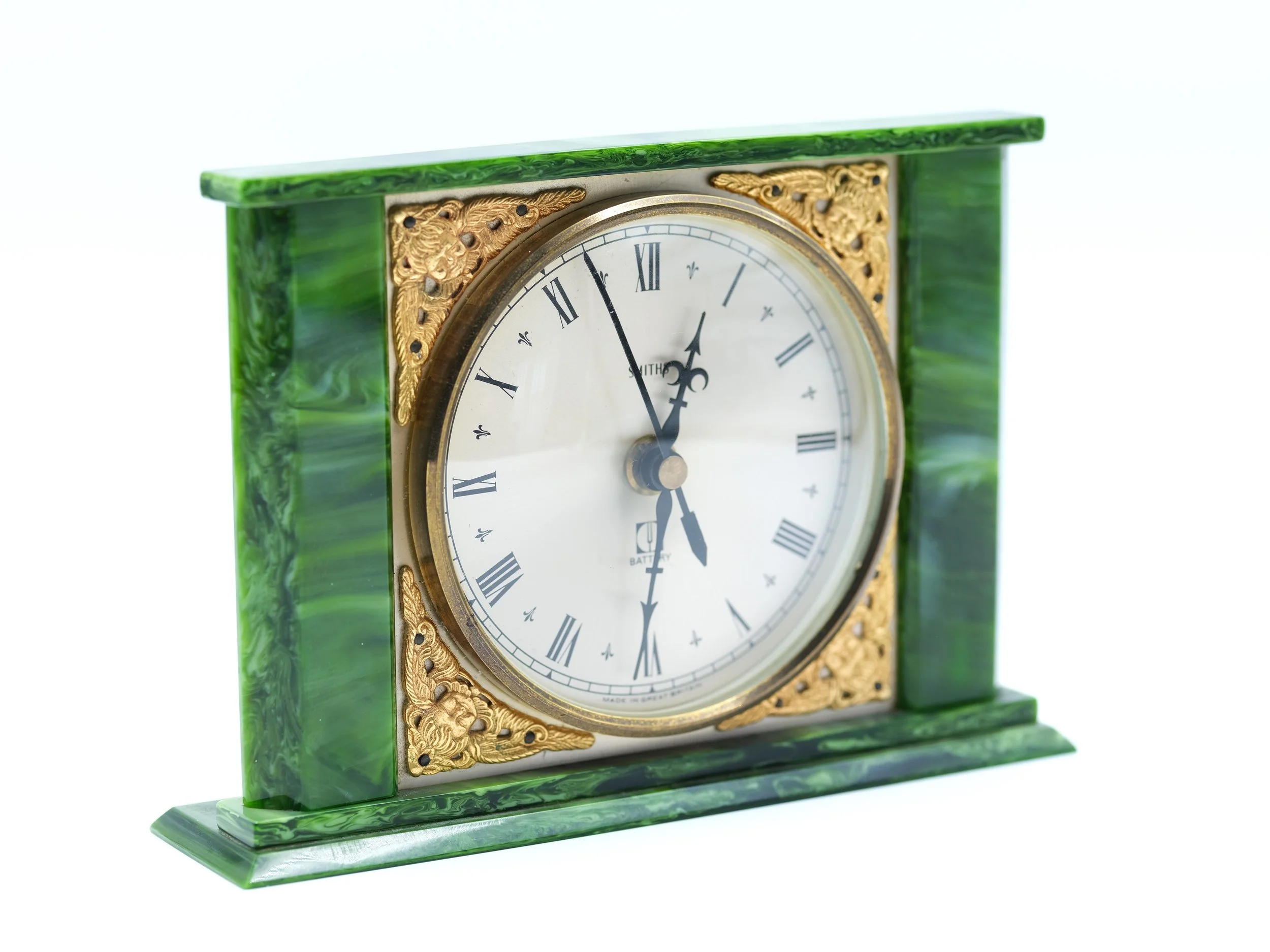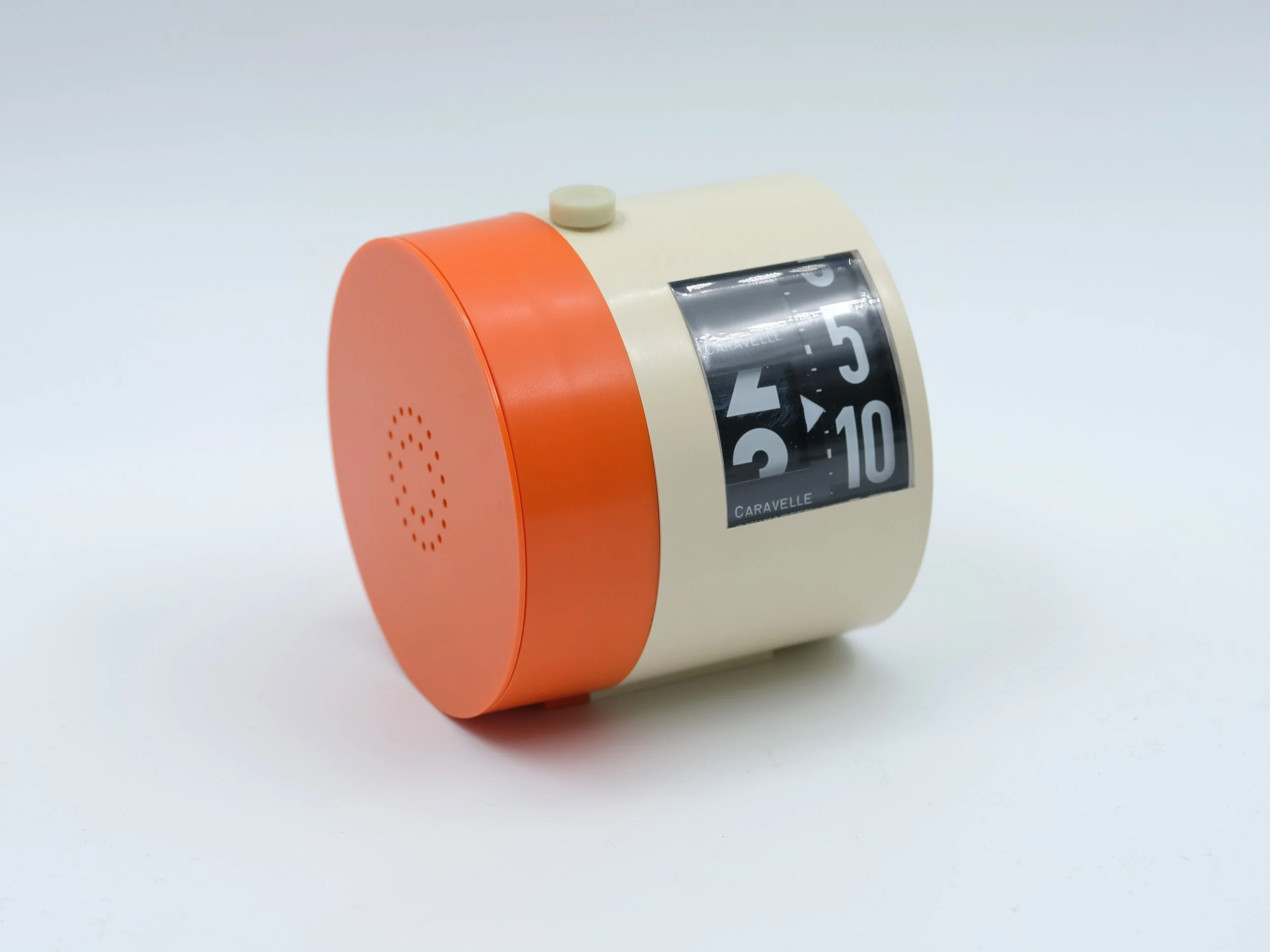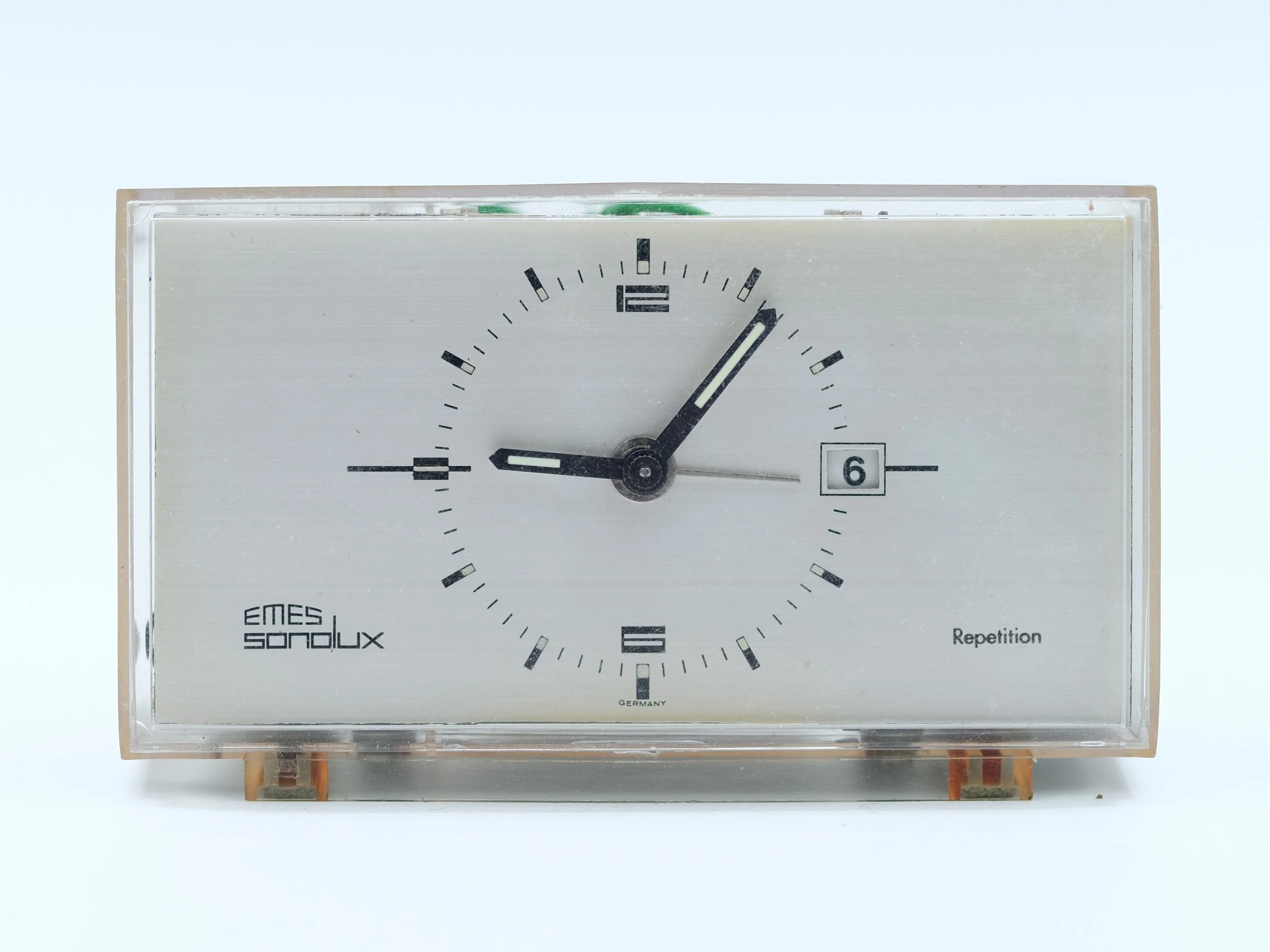 Deze klok met een uniek uurwerk dar zingt tijdens lopen. Een waar hebbedingetje voor verzamelaars van zeldzame klokken. Marbled plastics.