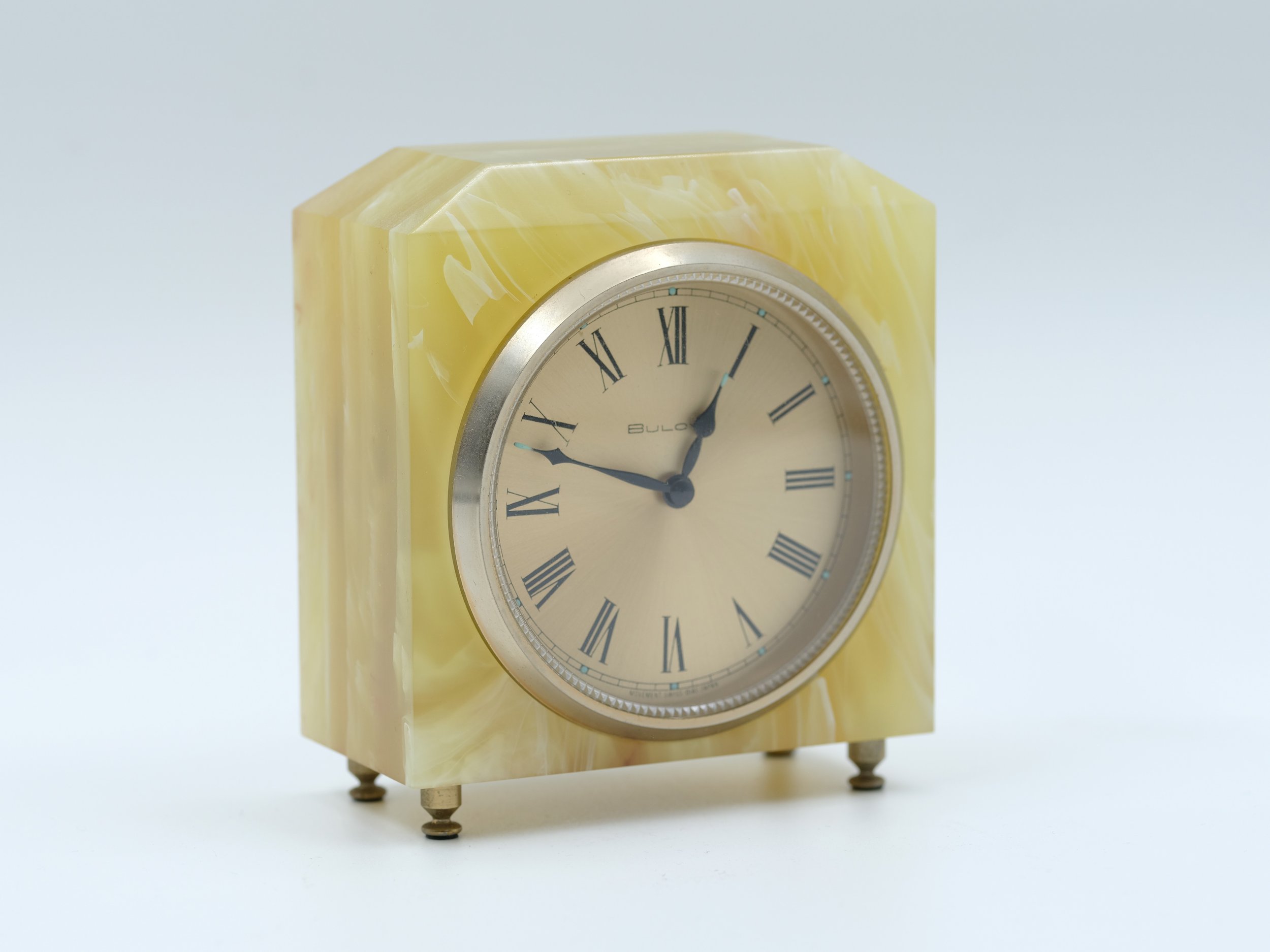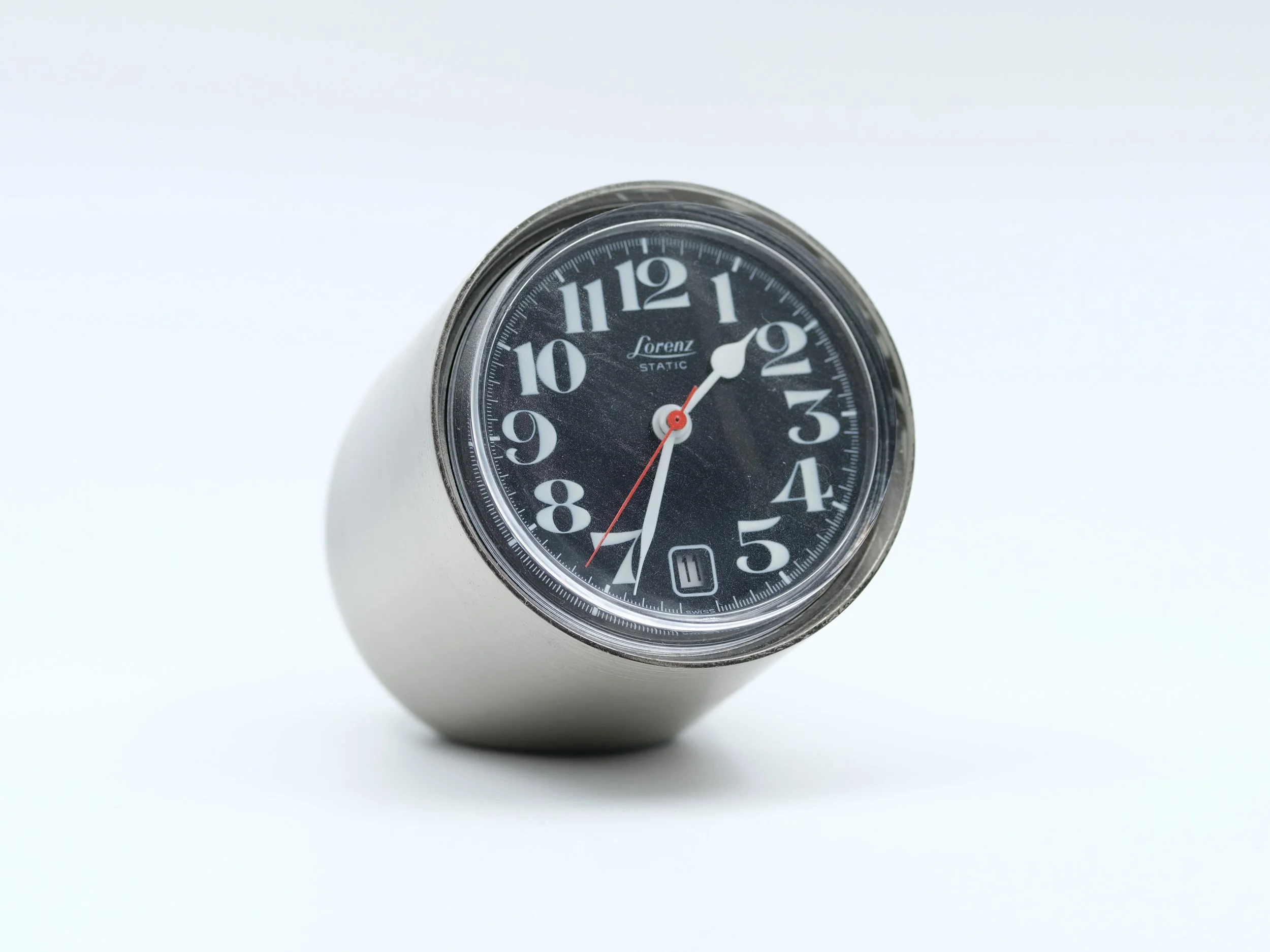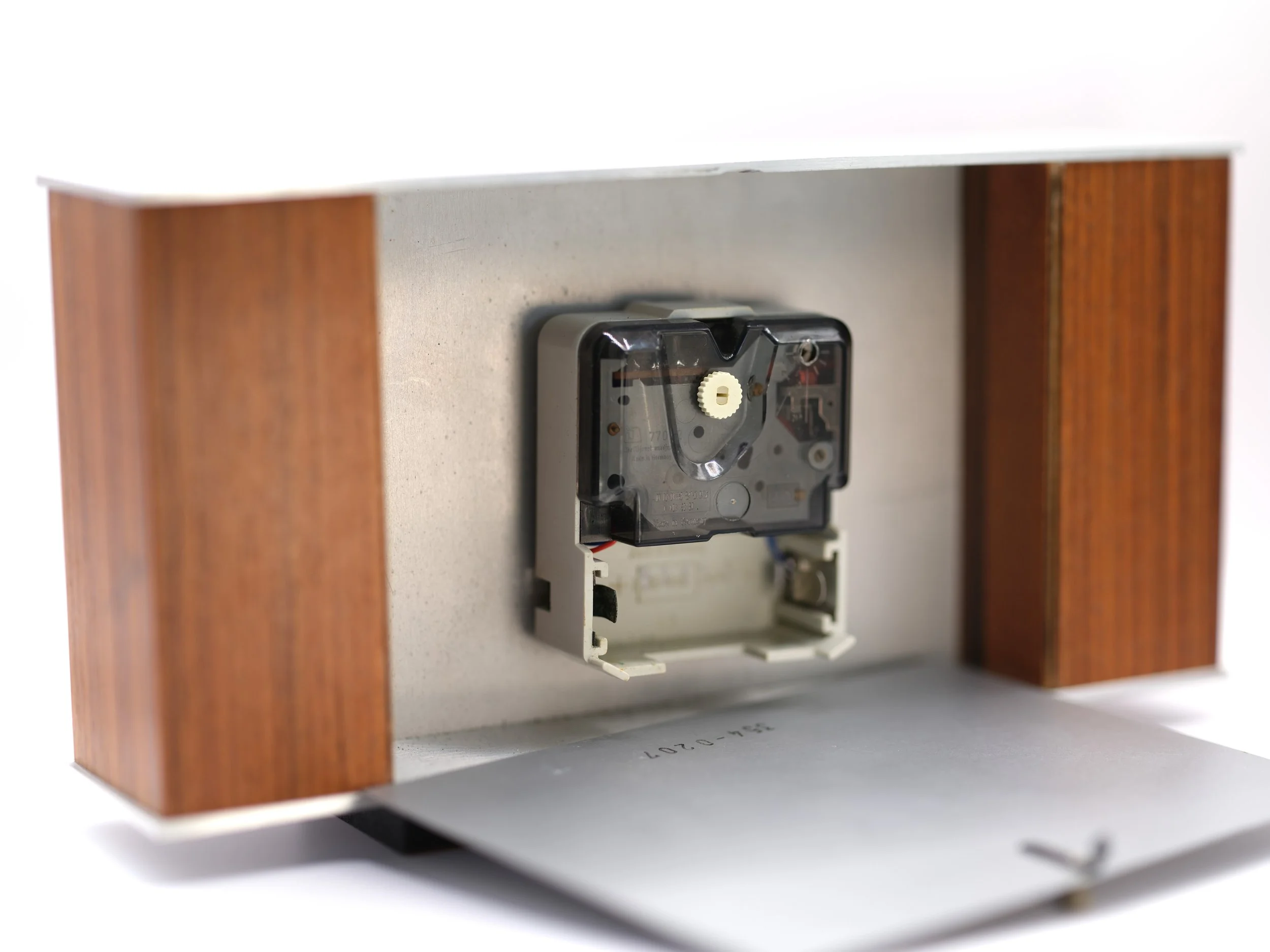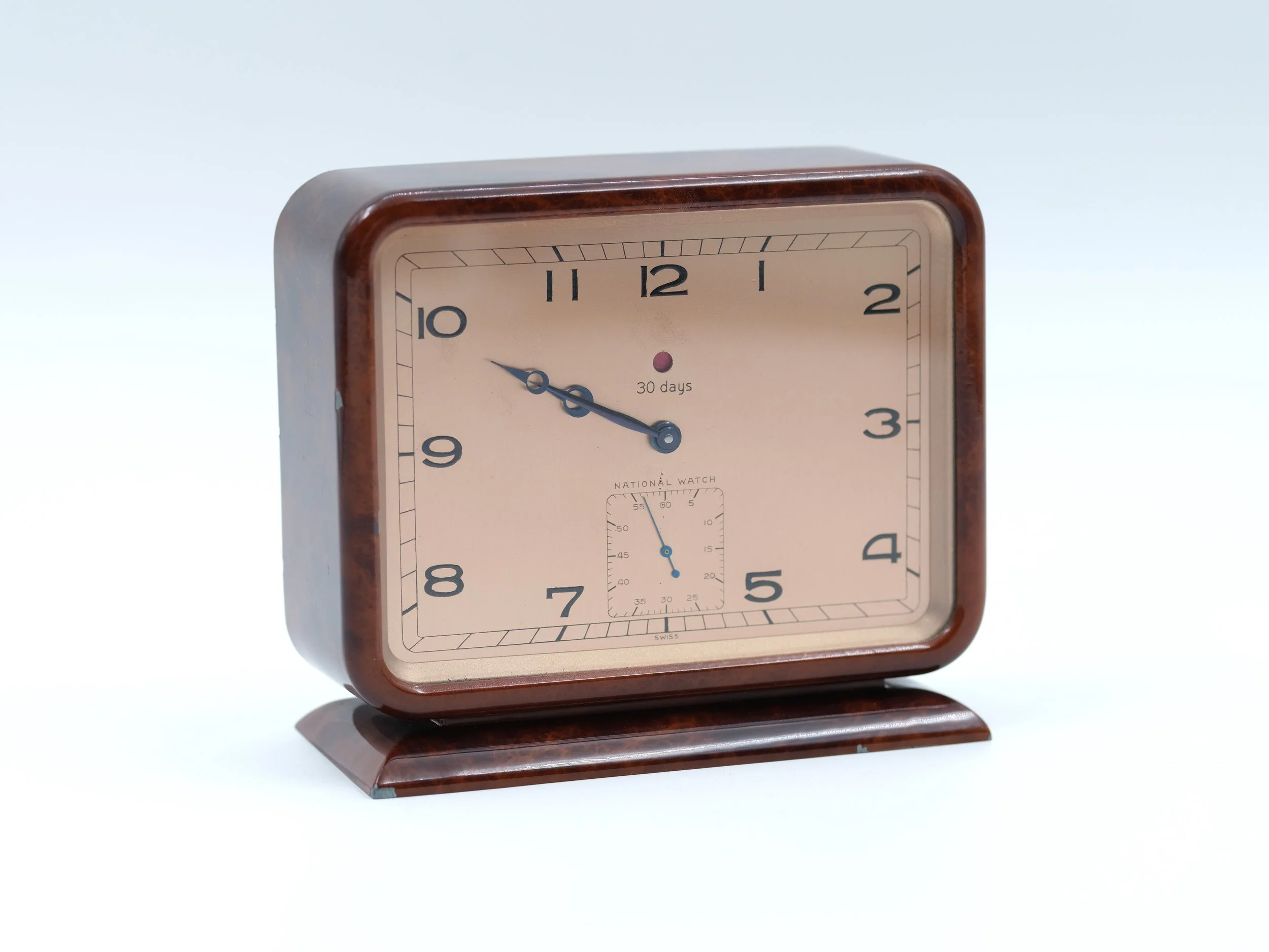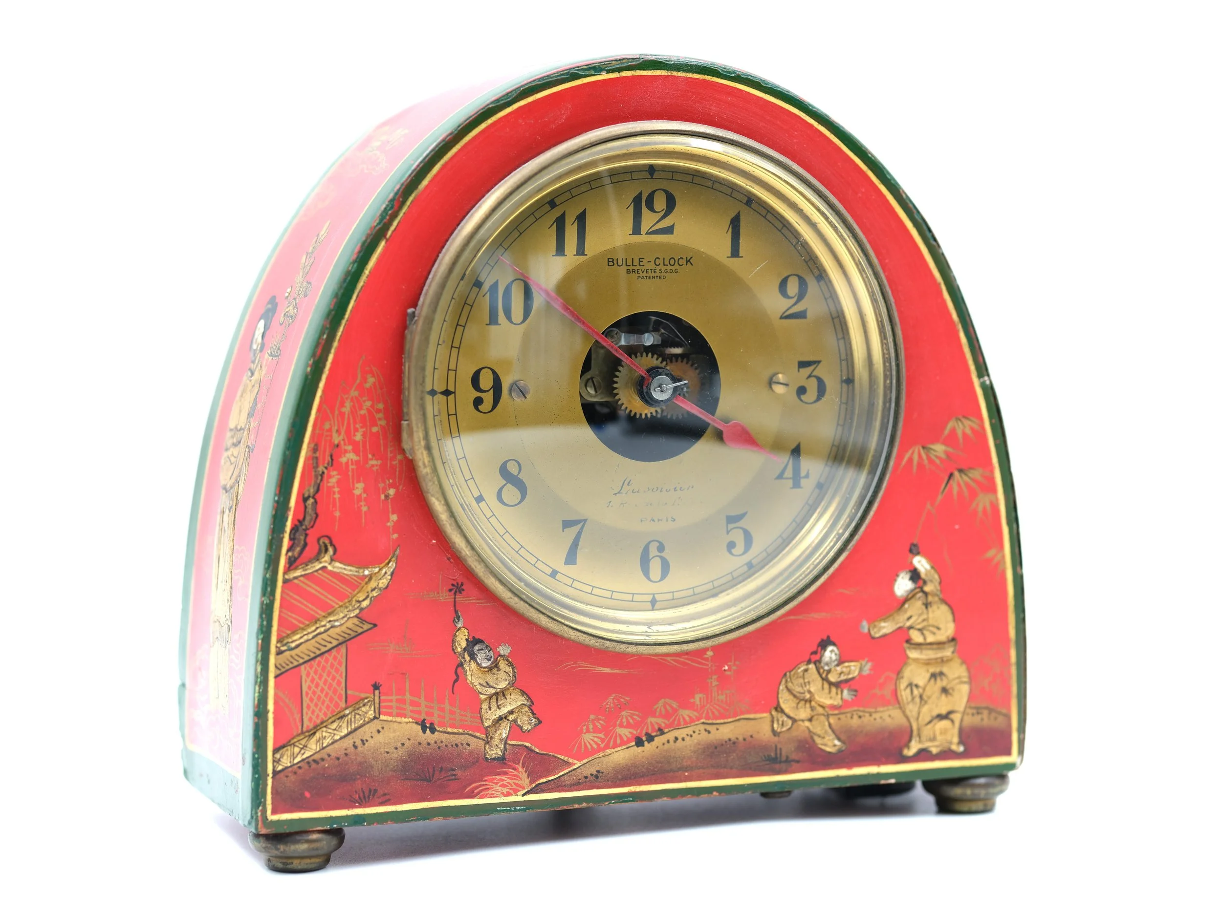 Deze klok met een uniek uurwerk dar zingt tijdens lopen. Een waar hebbedingetje voor verzamelaars van zeldzame klokken. Marbled plastics.
