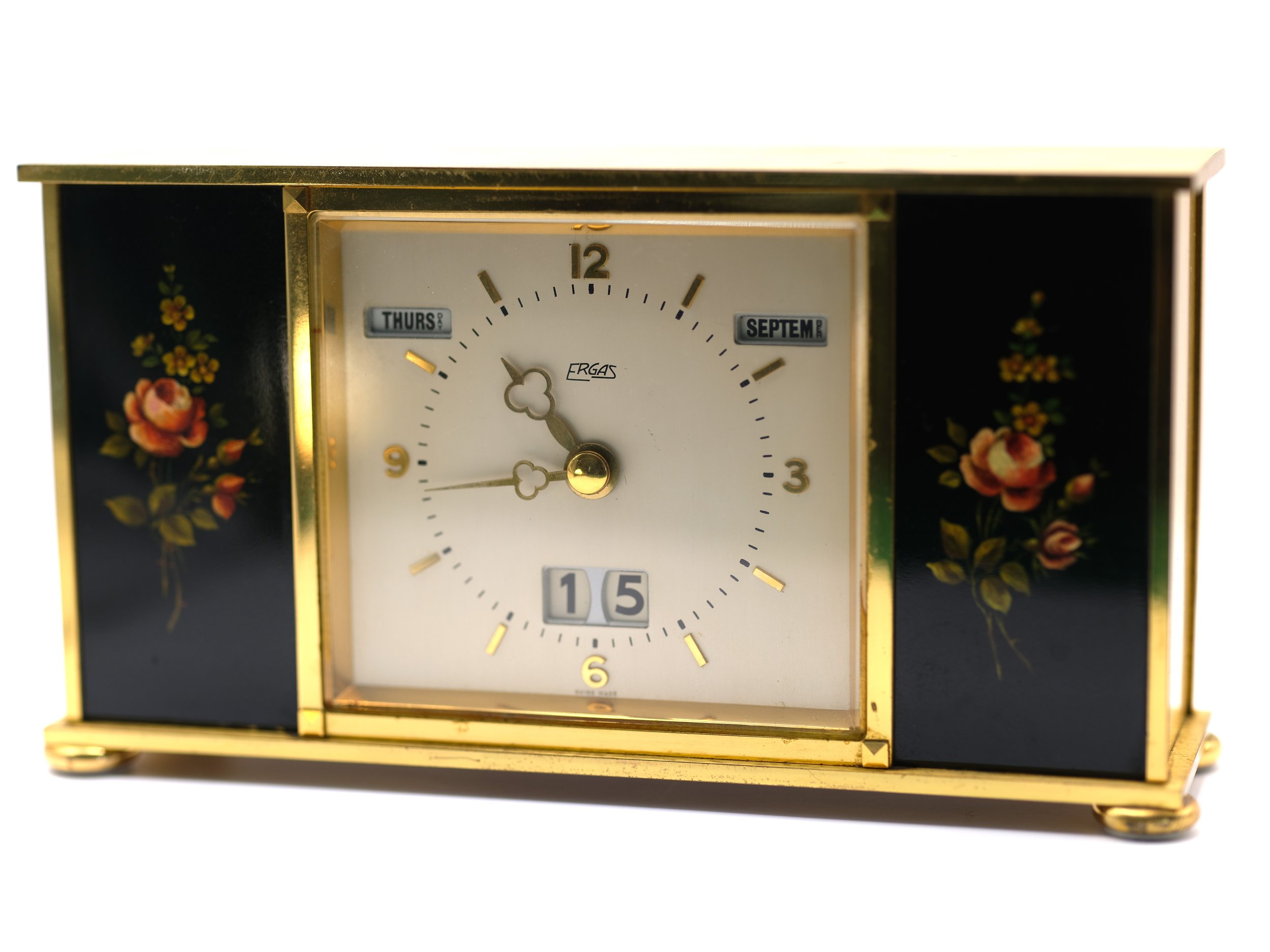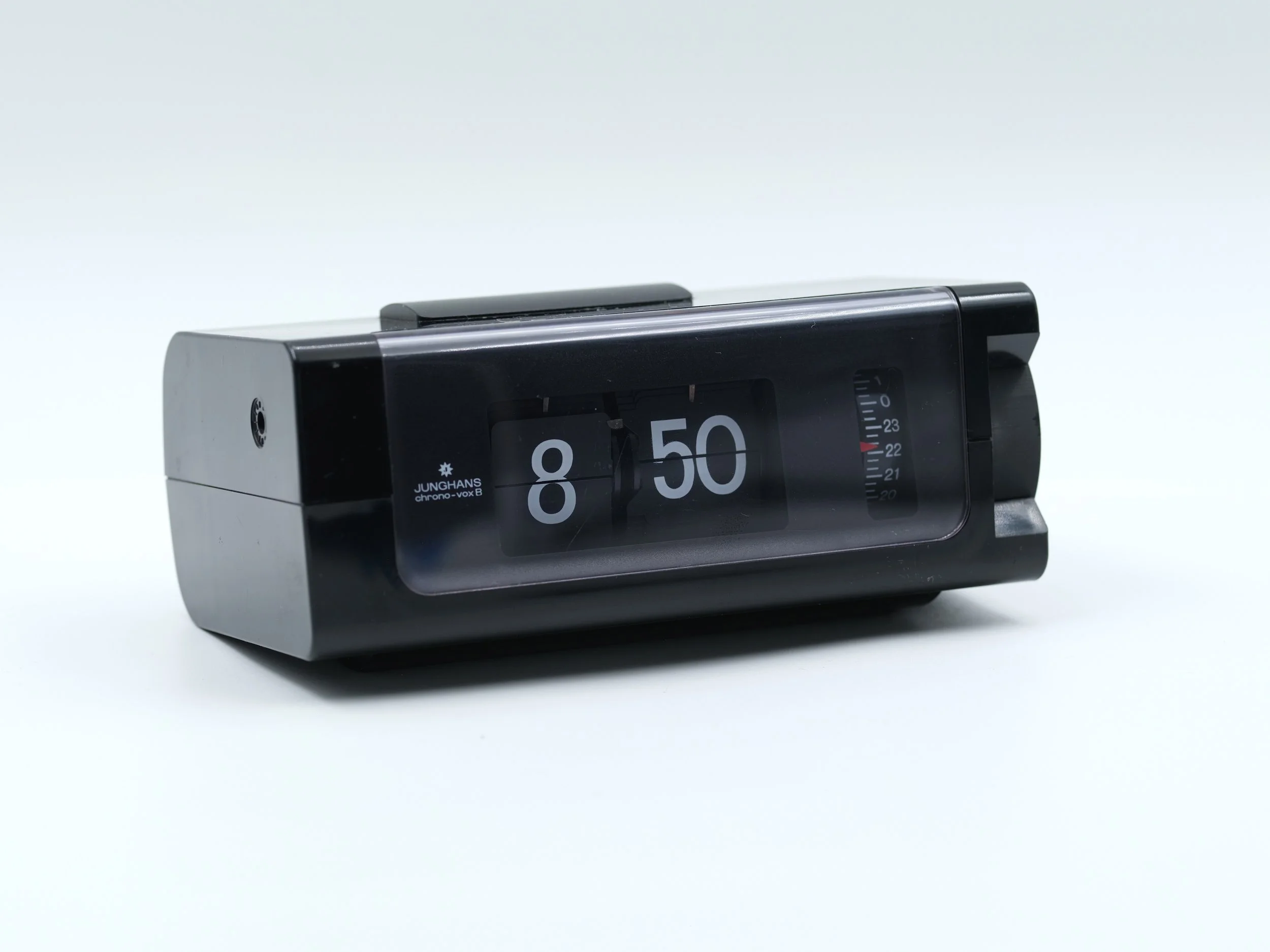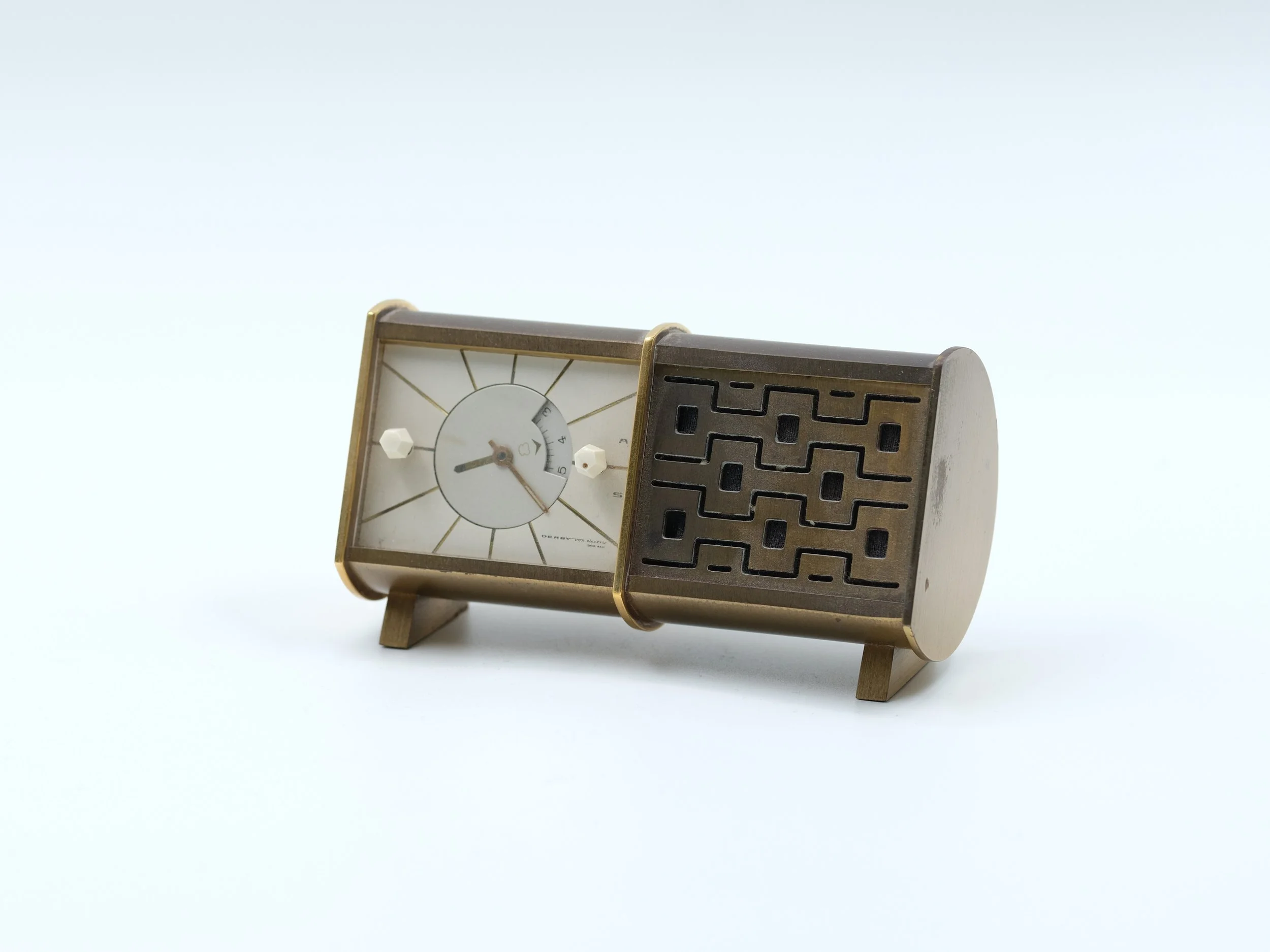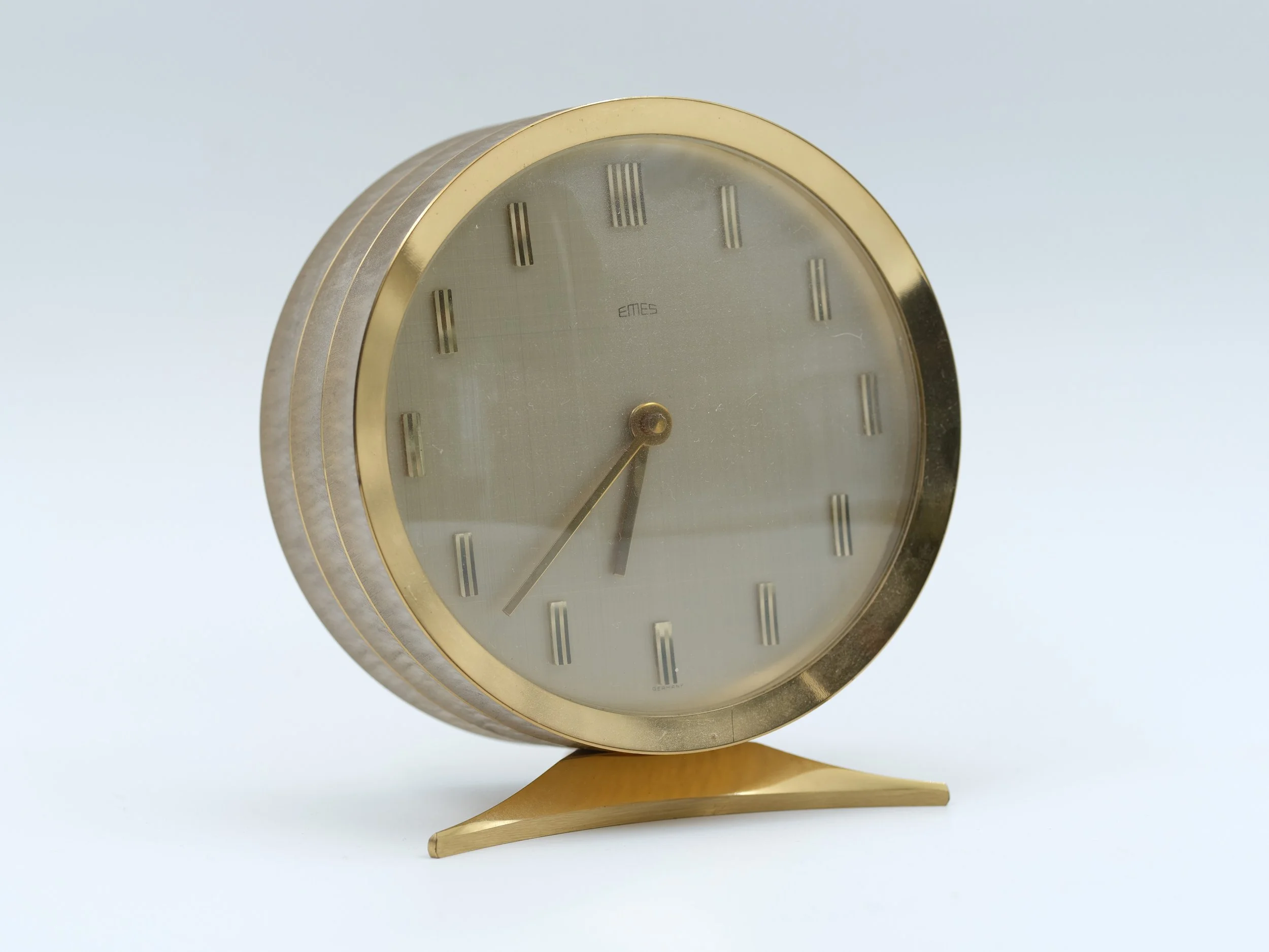 Deze klok met een uniek uurwerk dar zingt tijdens lopen. Een waar hebbedingetje voor verzamelaars van zeldzame klokken. Marbled plastics.