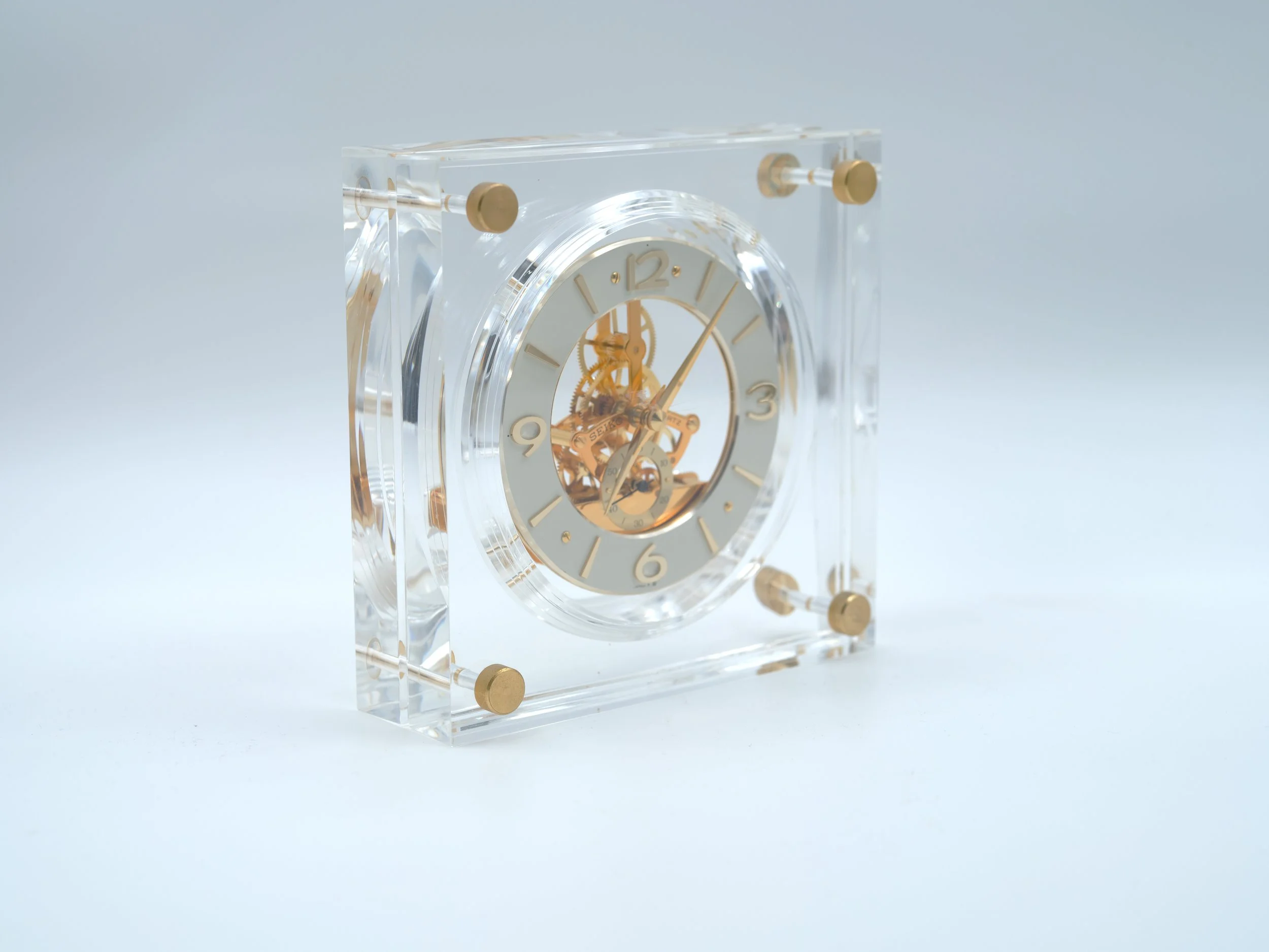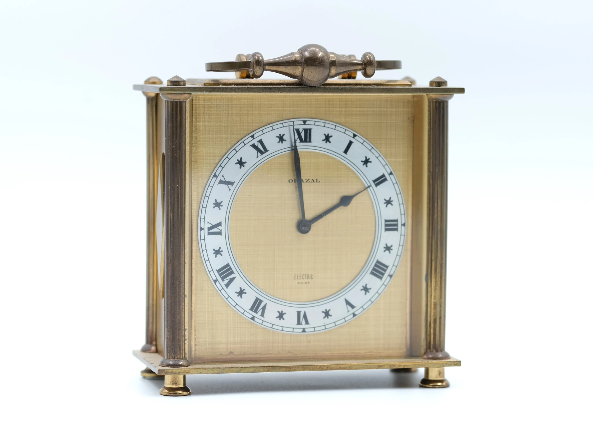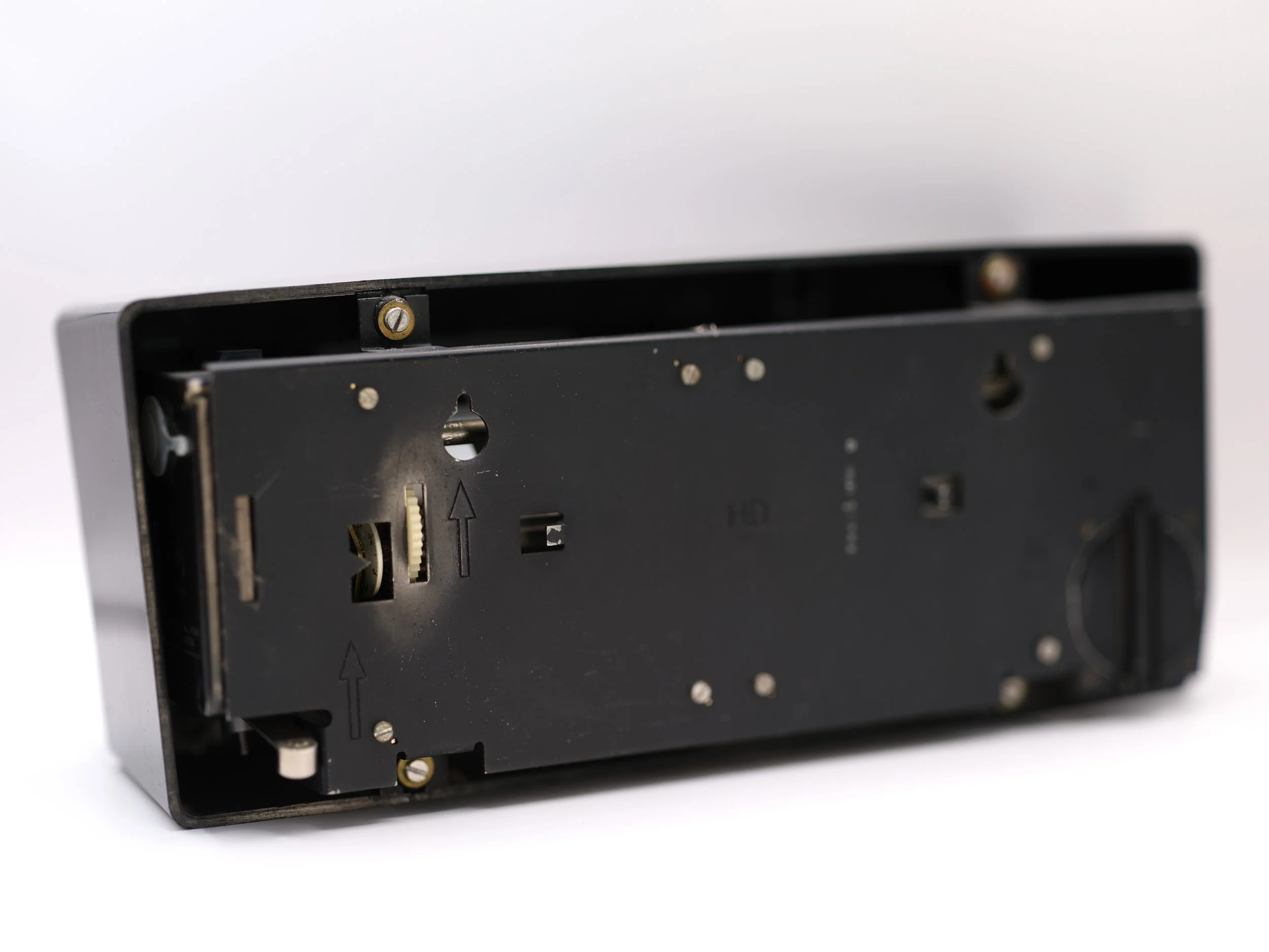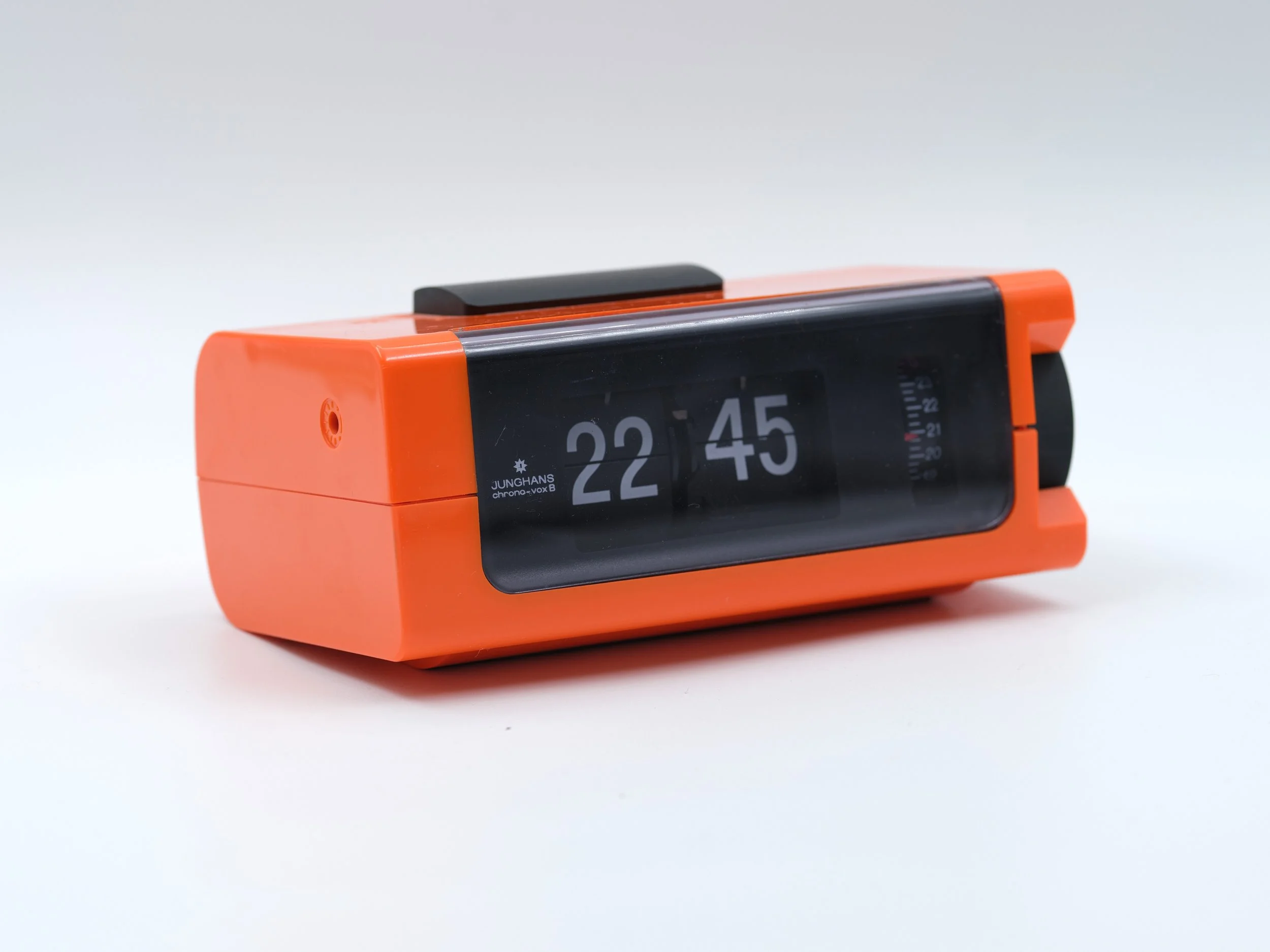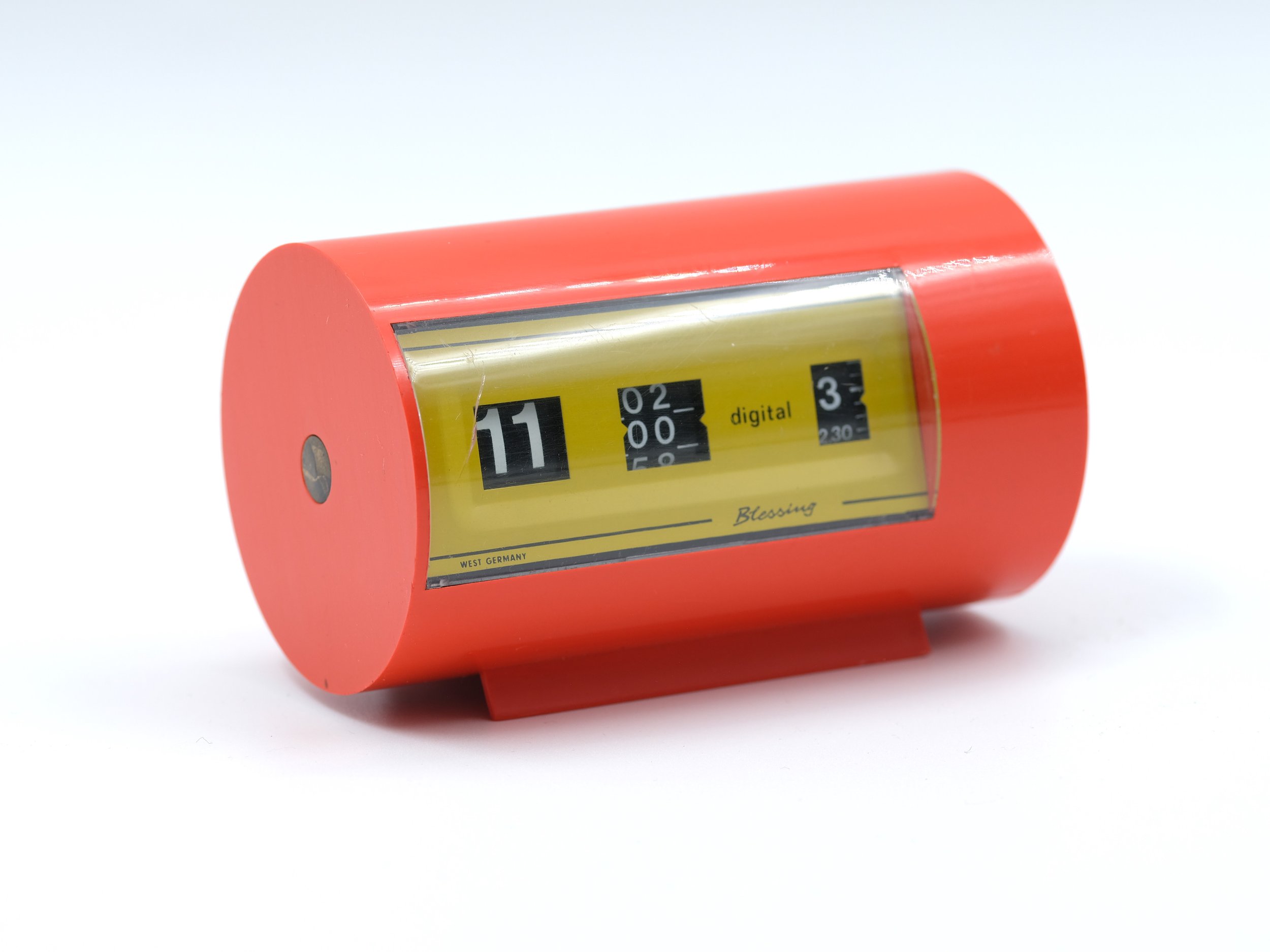 Deze klok met een uniek uurwerk dar zingt tijdens lopen. Een waar hebbedingetje voor verzamelaars van zeldzame klokken. Marbled plastics.