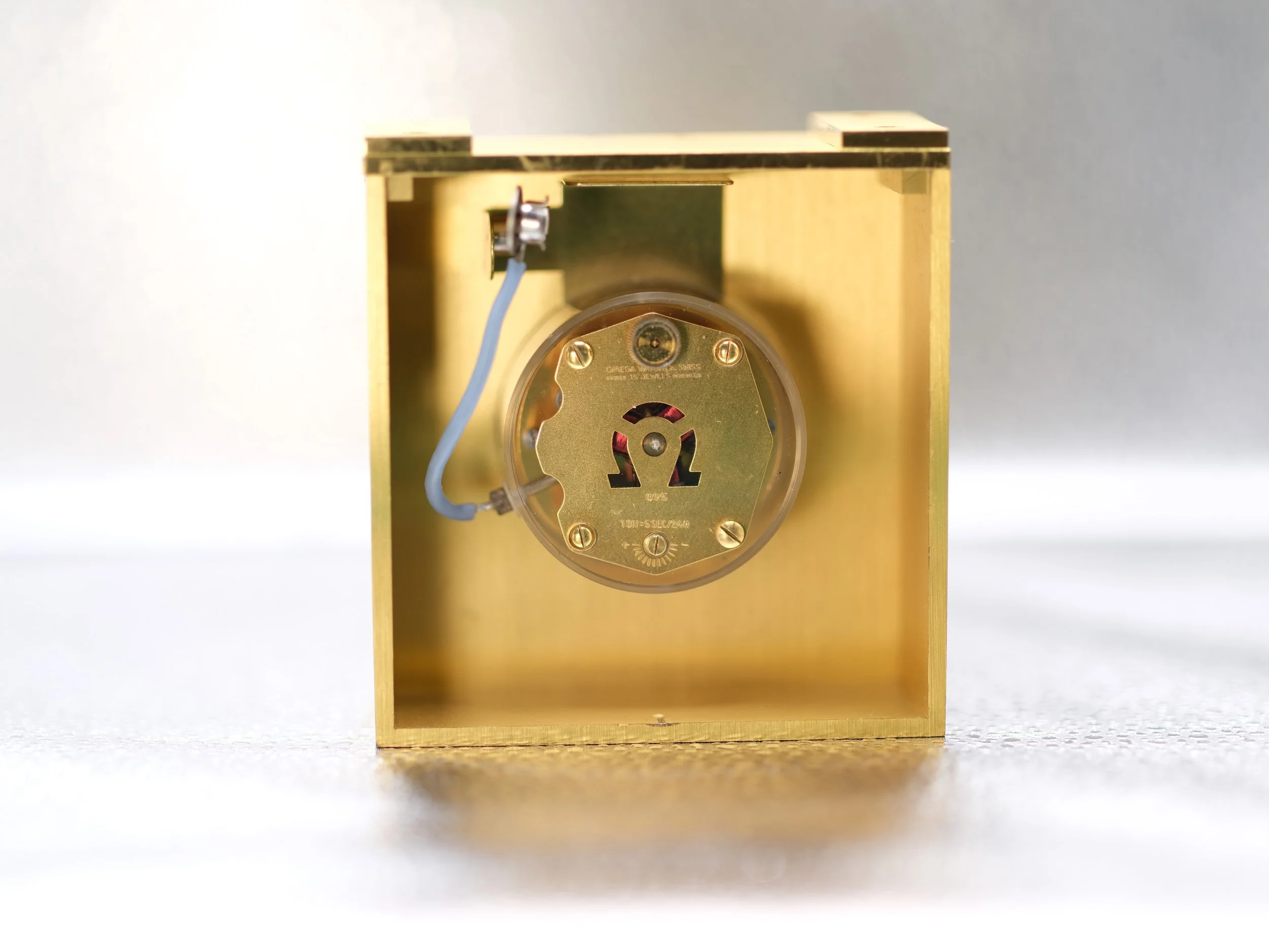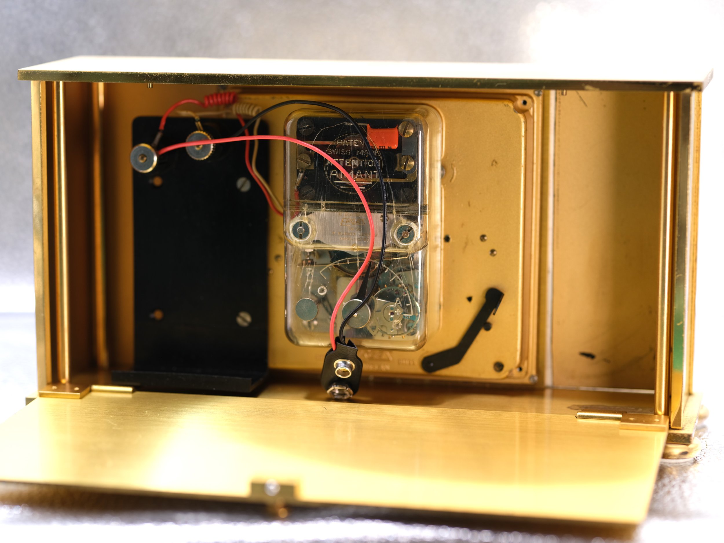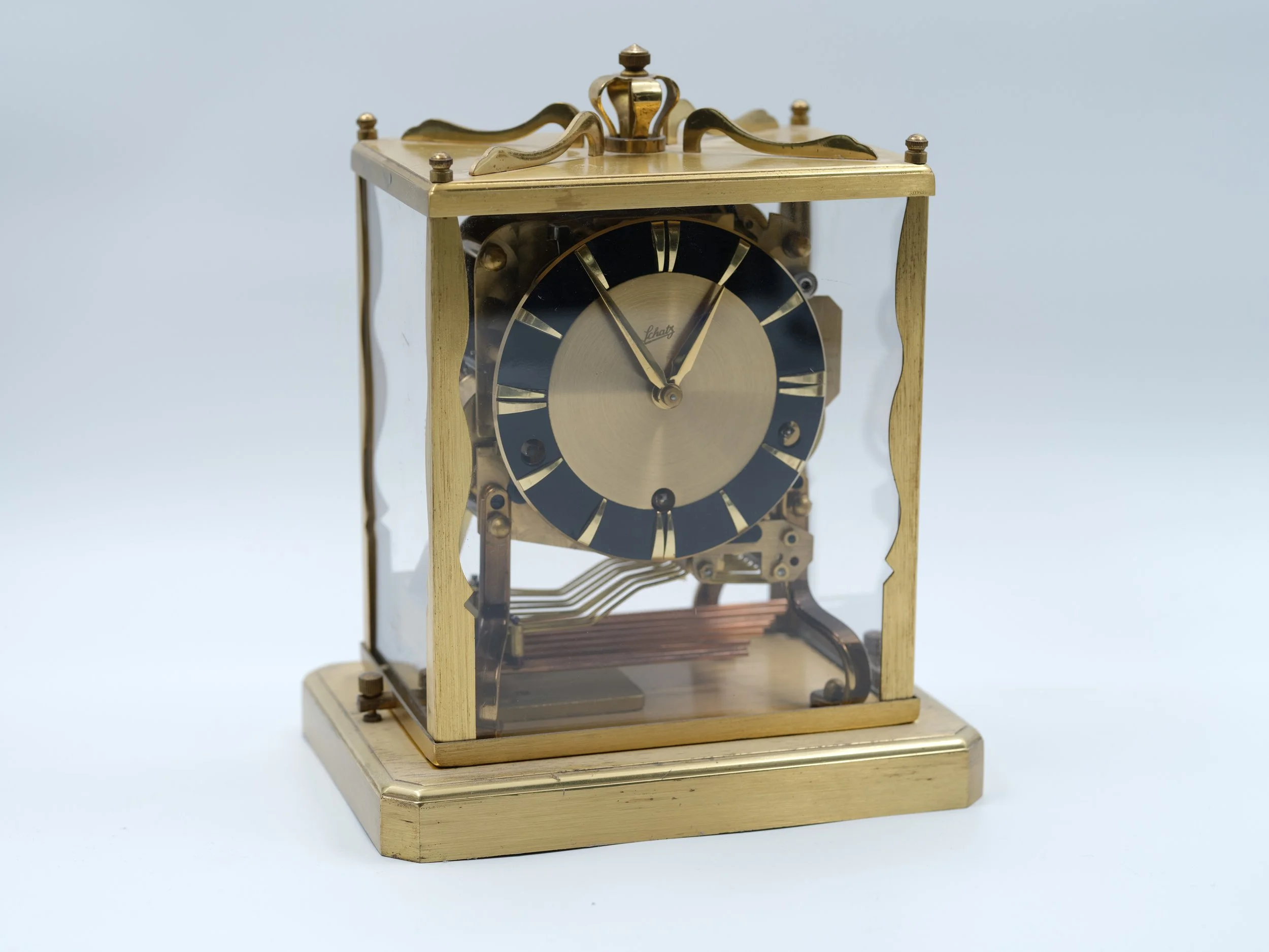 Een prachtige elektrische quartzklok! Meer dan 3 kilo messing gewicht! Een quartz kristal nog in de grootte van een radio buisje! Zeer zeldzaam!