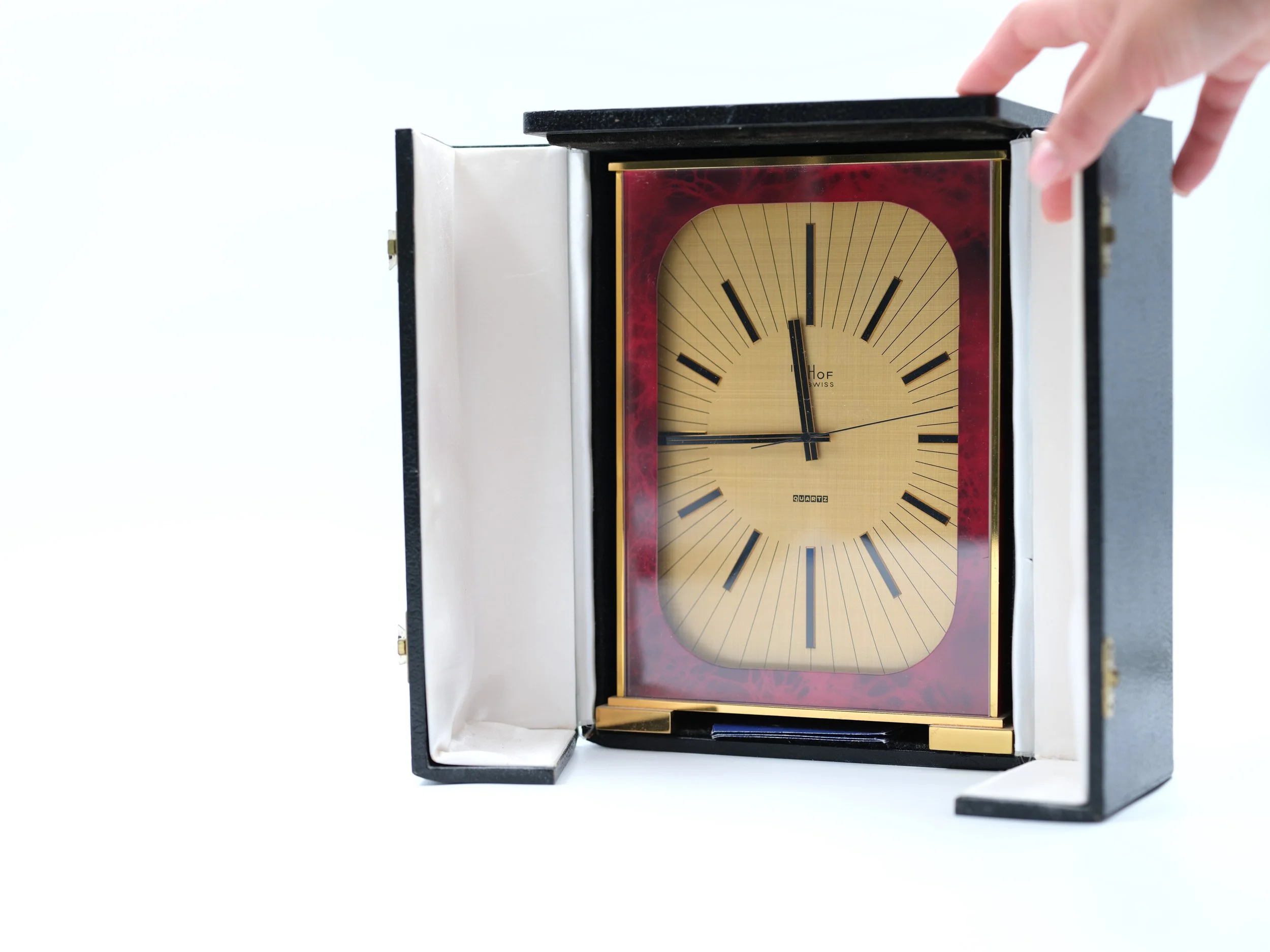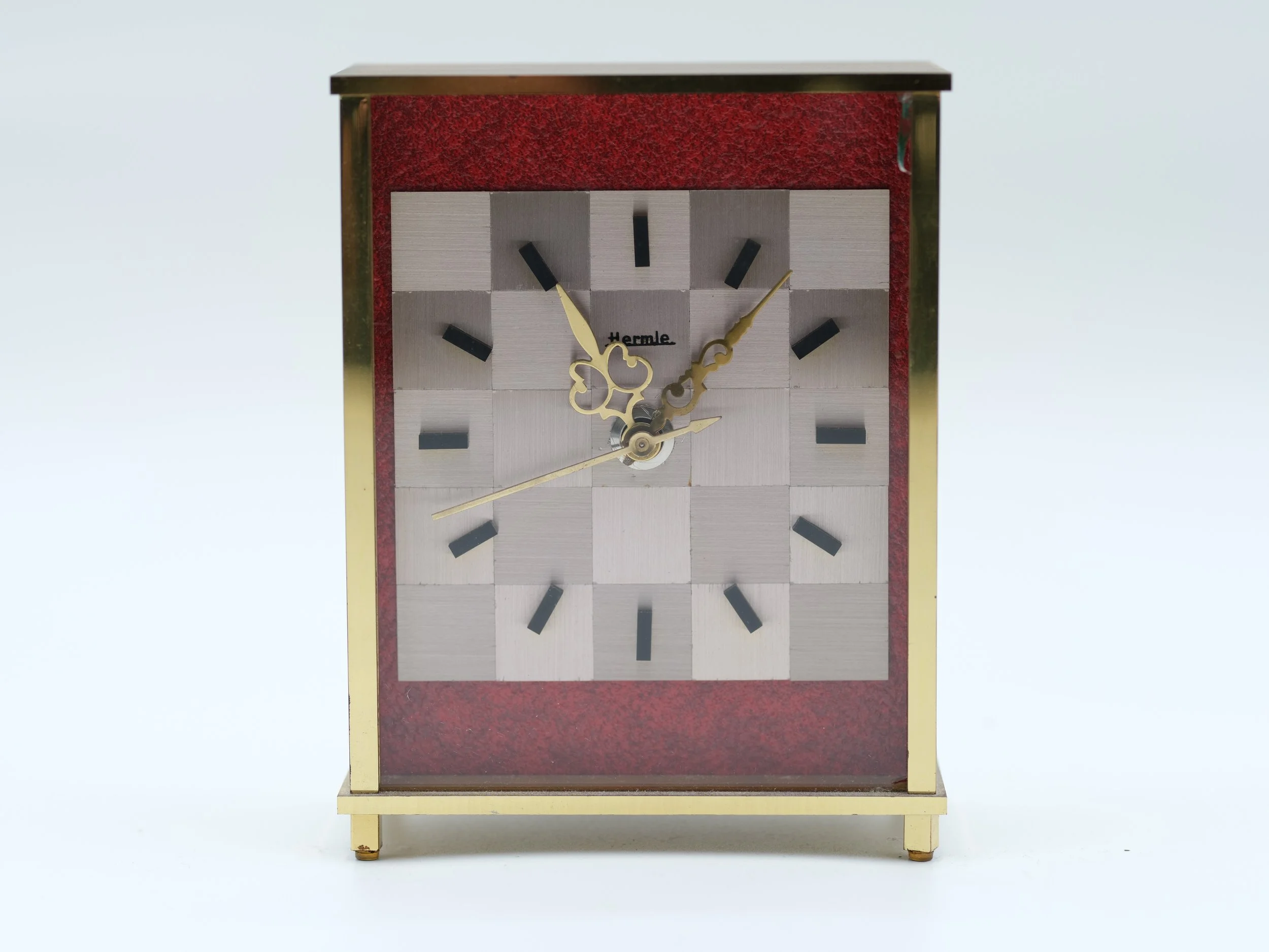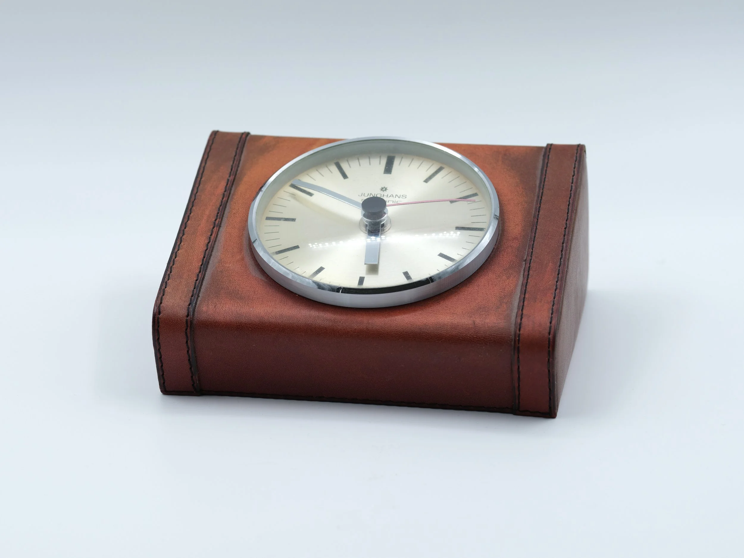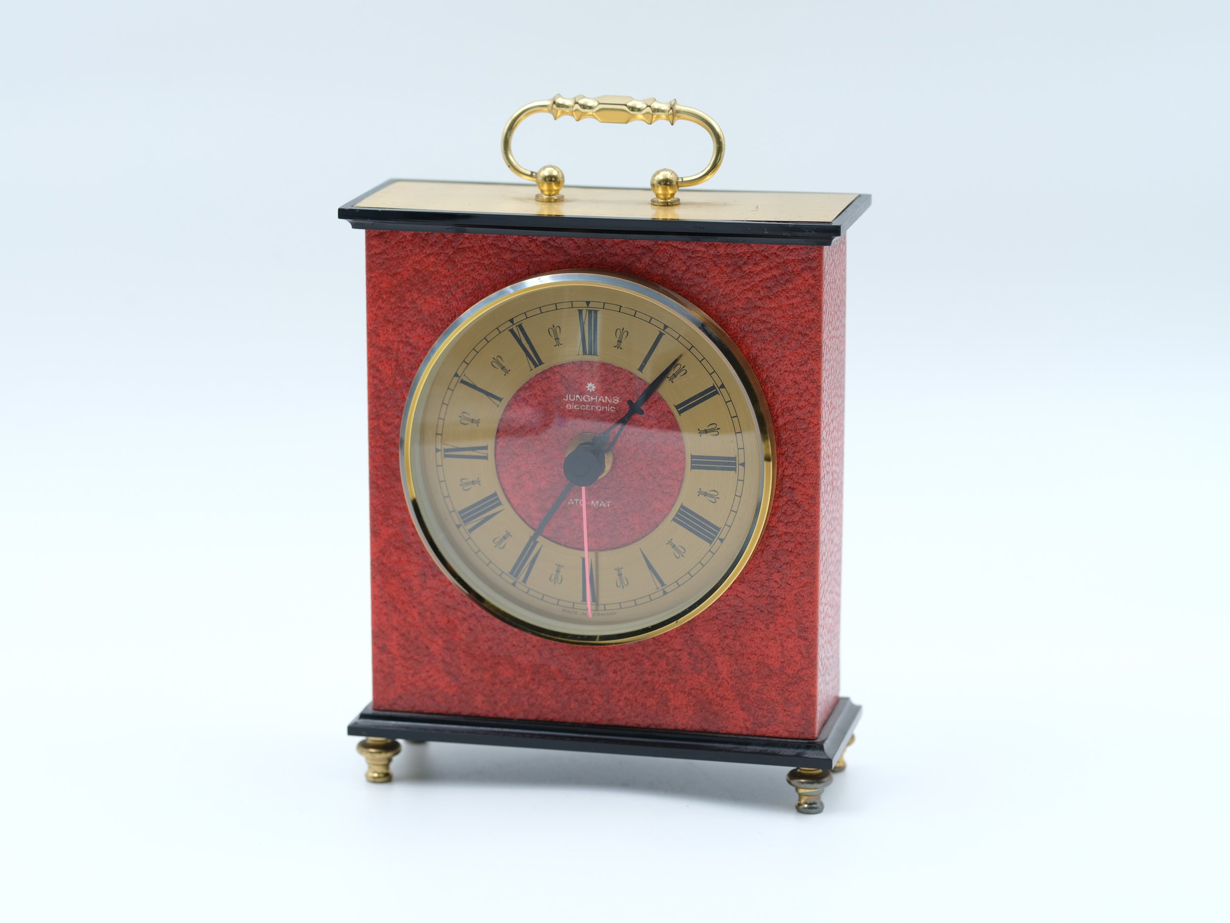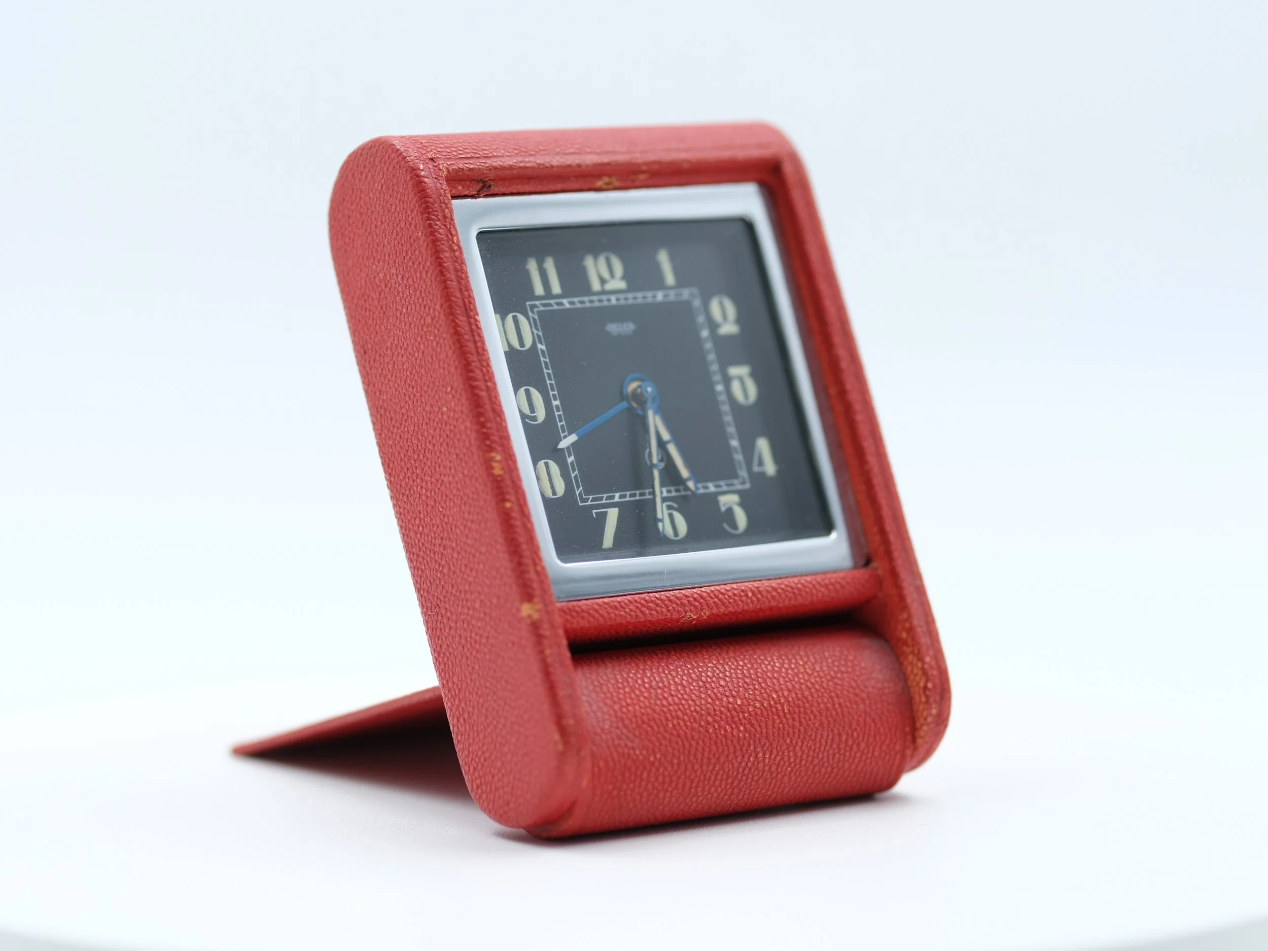 Prachtig reiswekkertje in rood leer van het beroemde werk JAEGER.