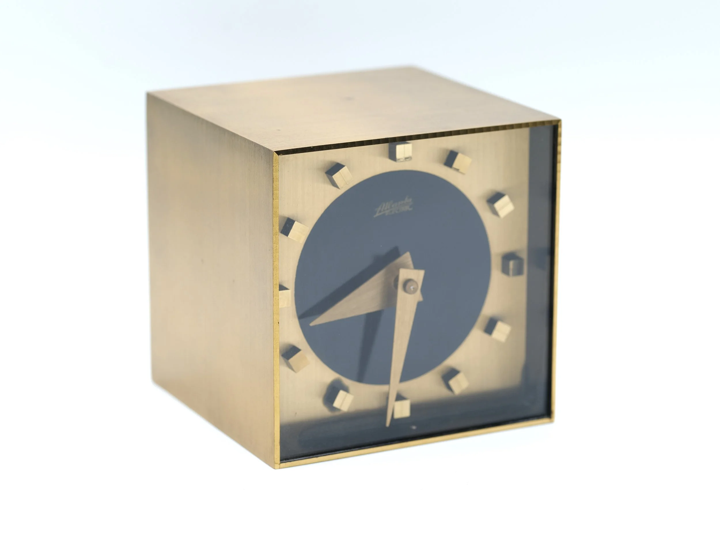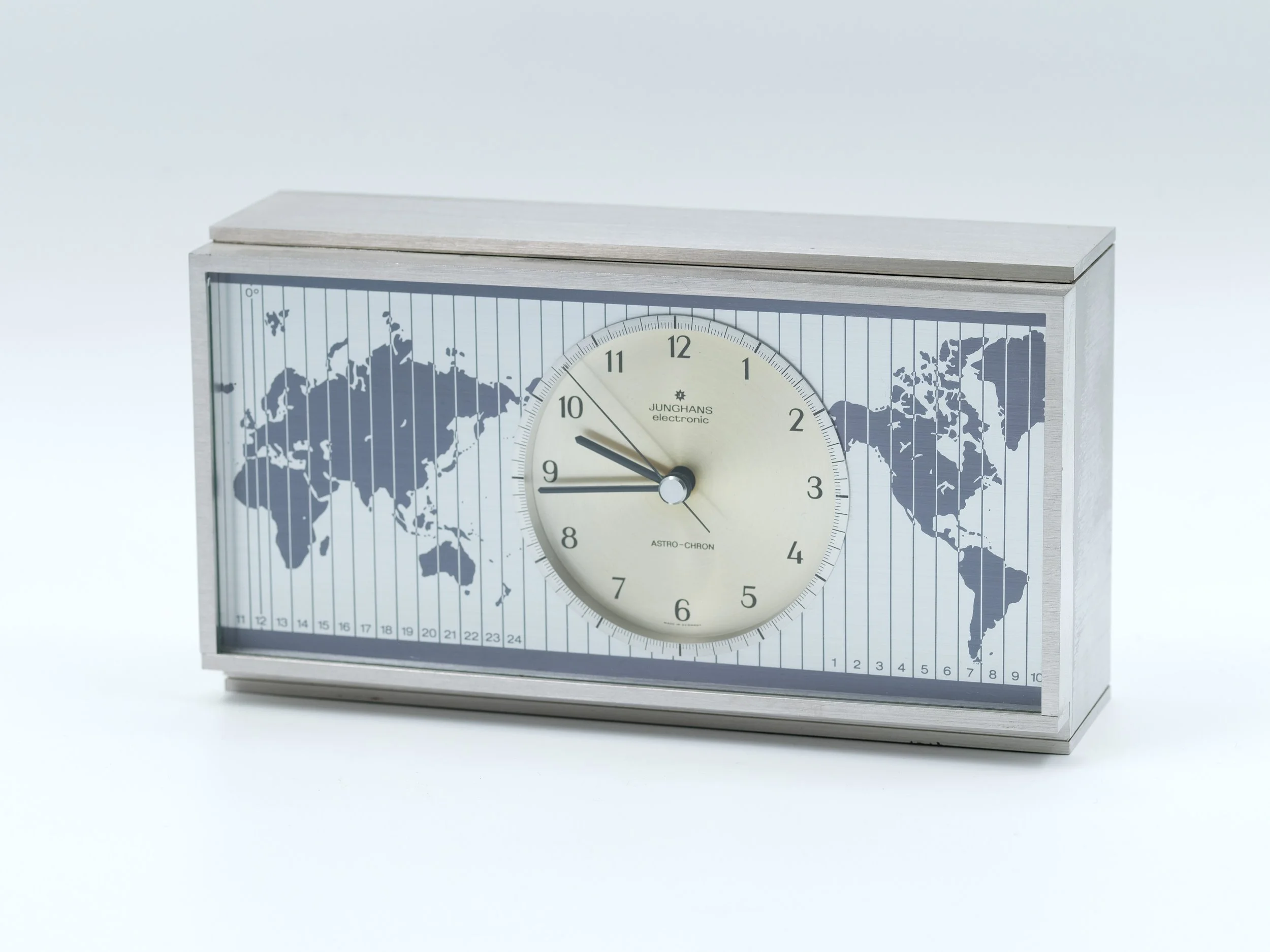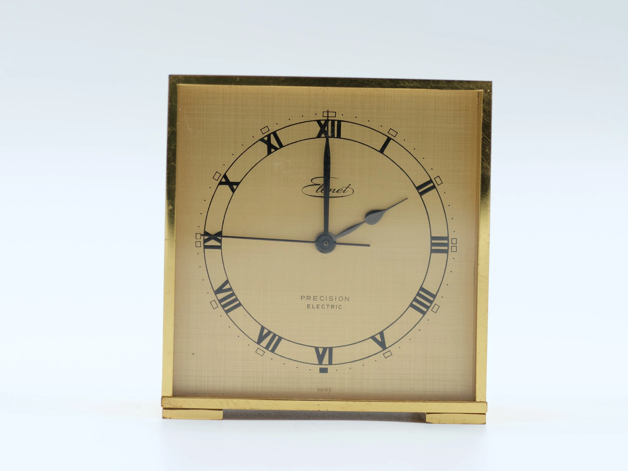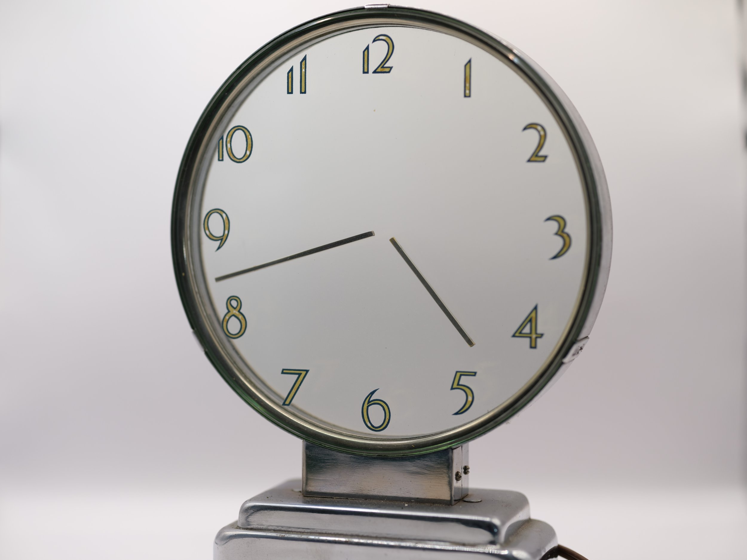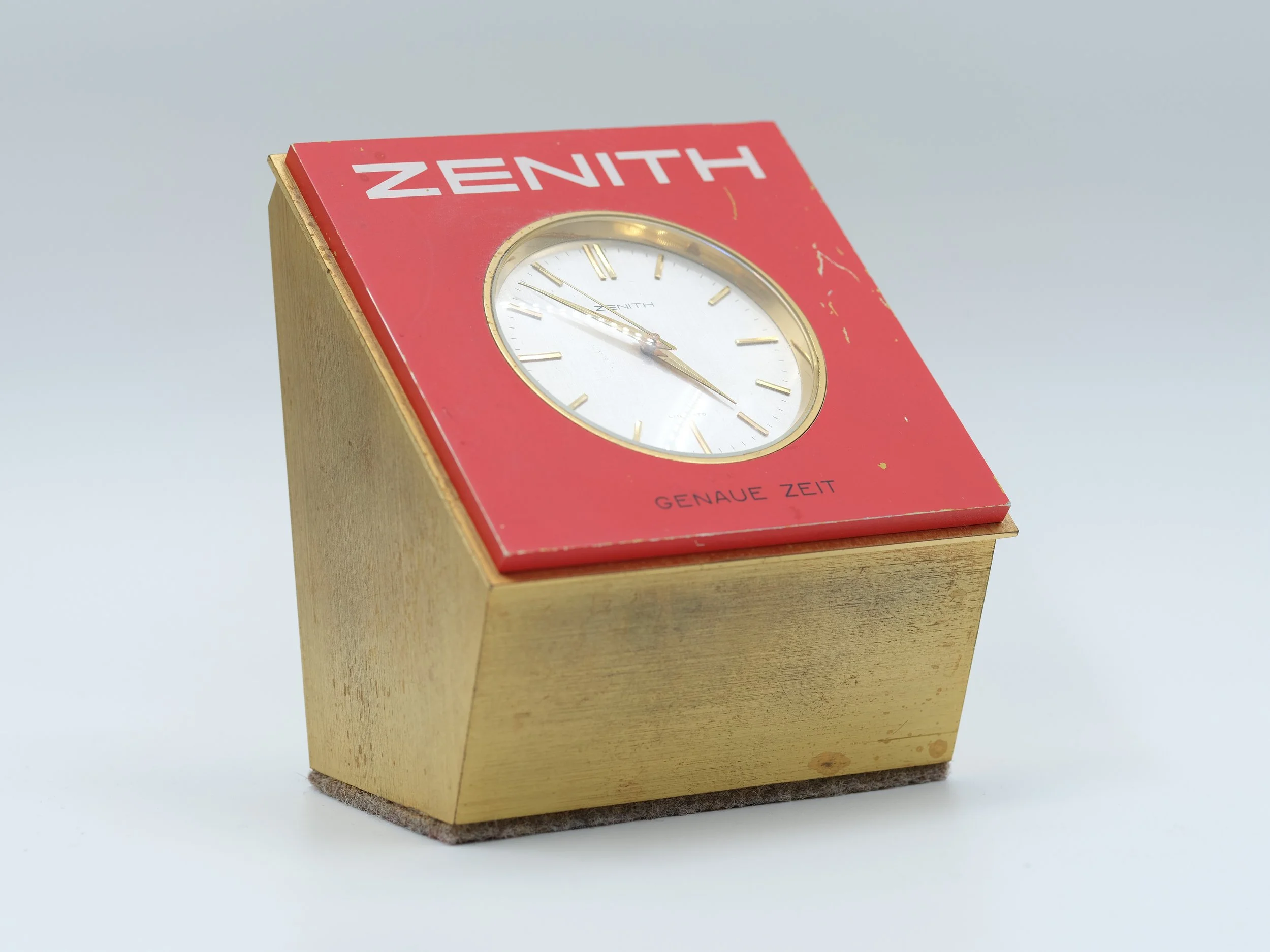 Bijzonder leuke elektrische klok van Zenith met als opschrift: “De juiste tijd” in het Duits. VERKOCHT.