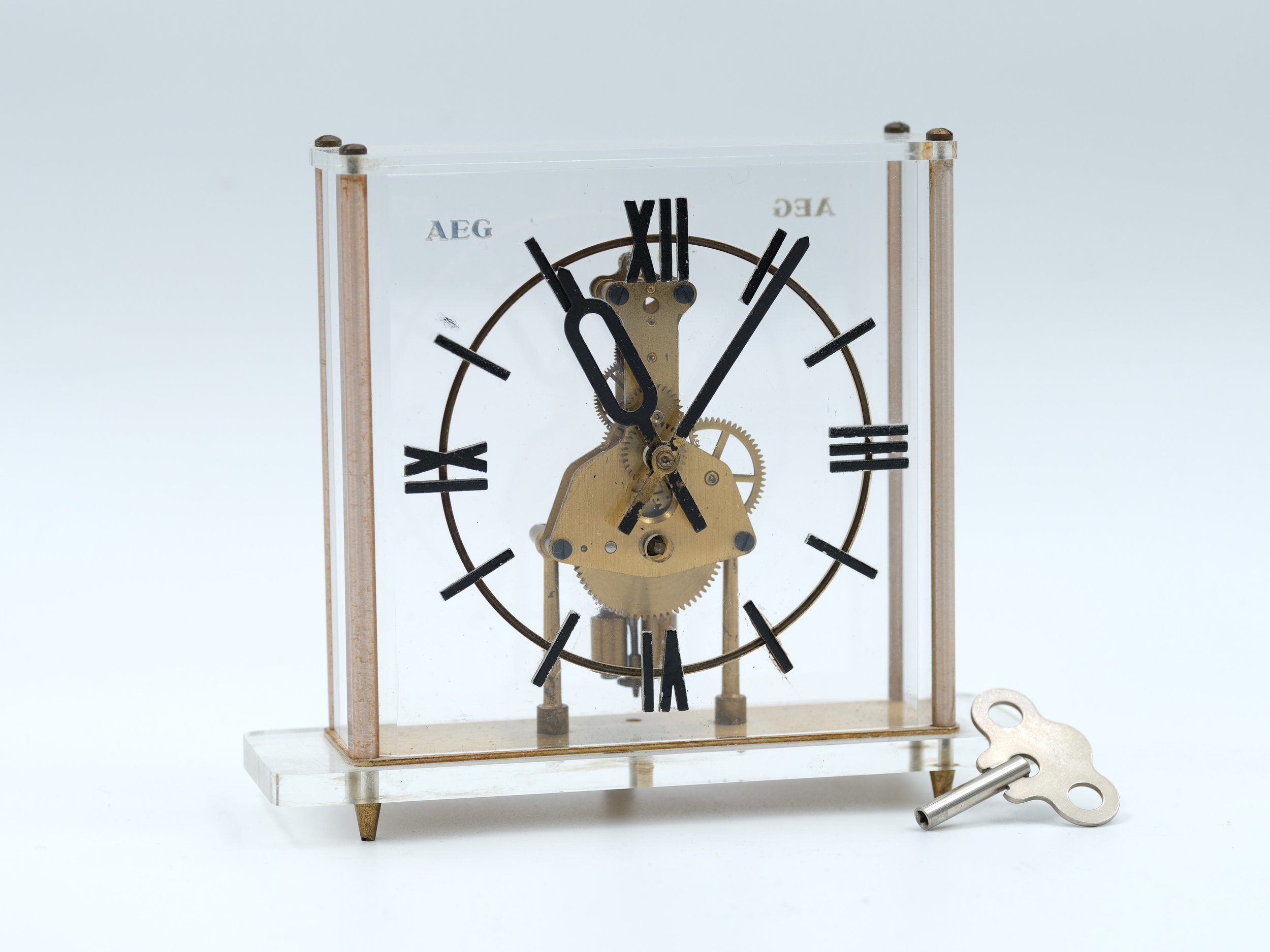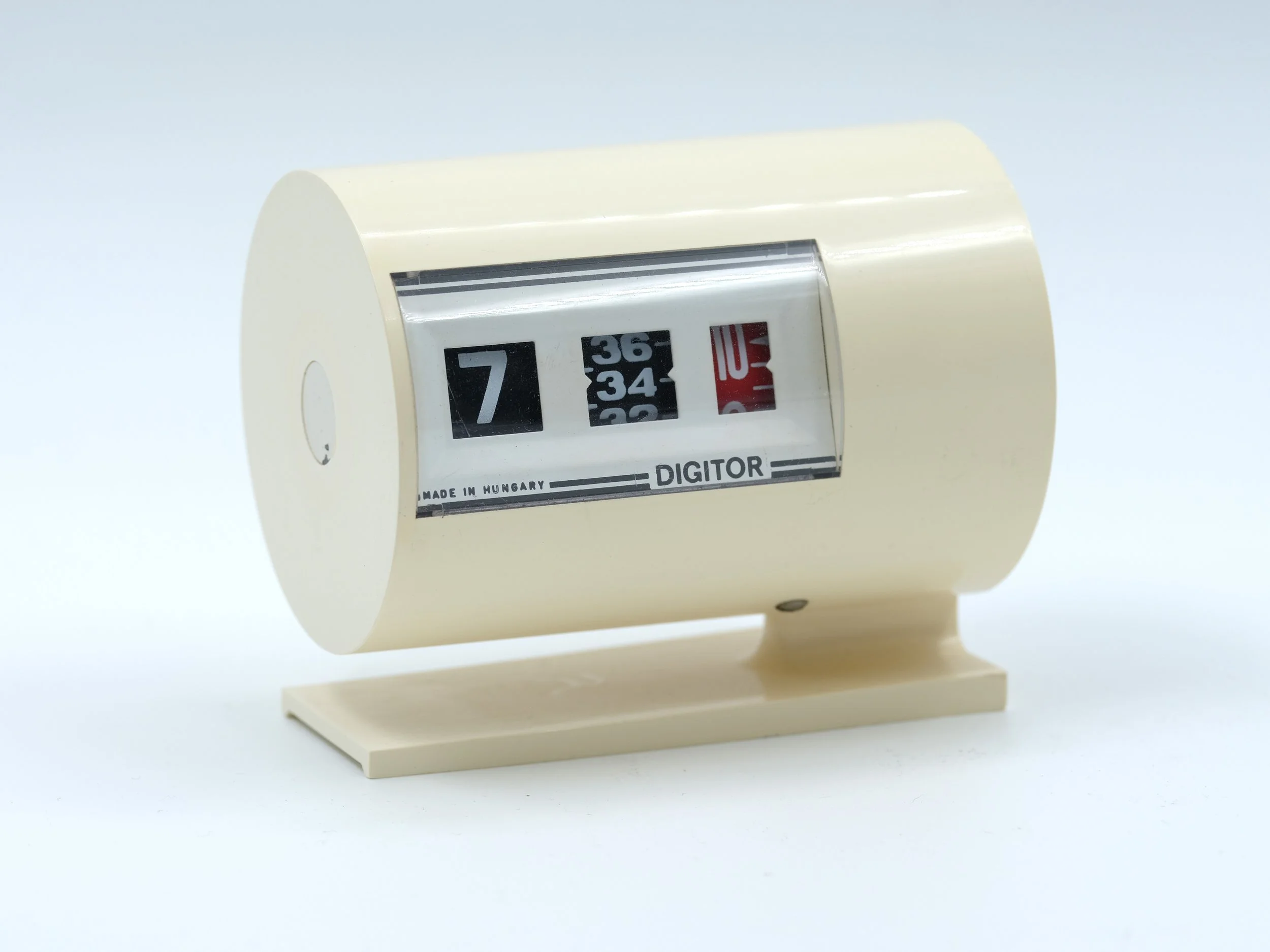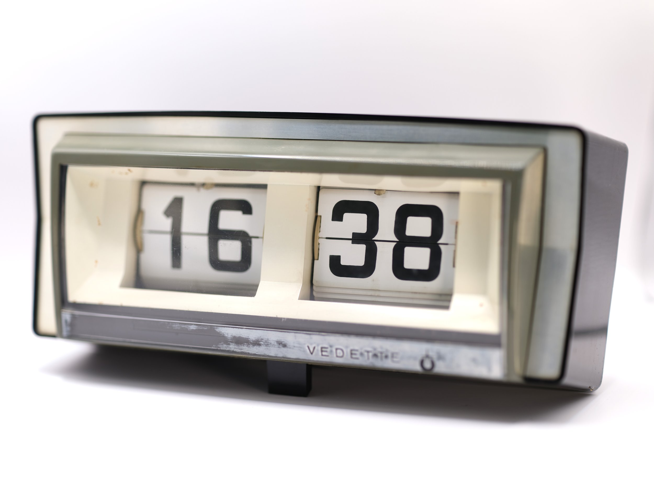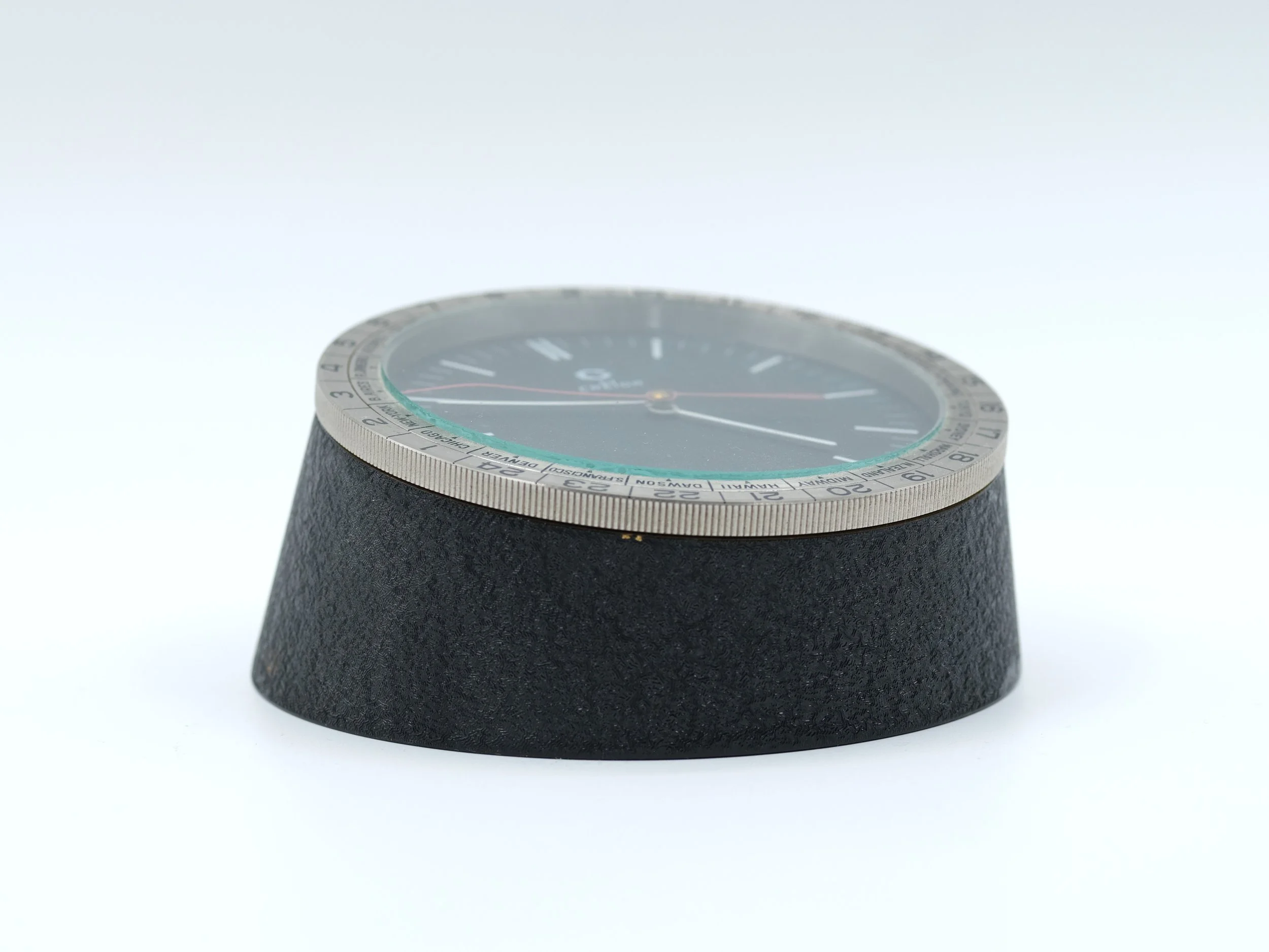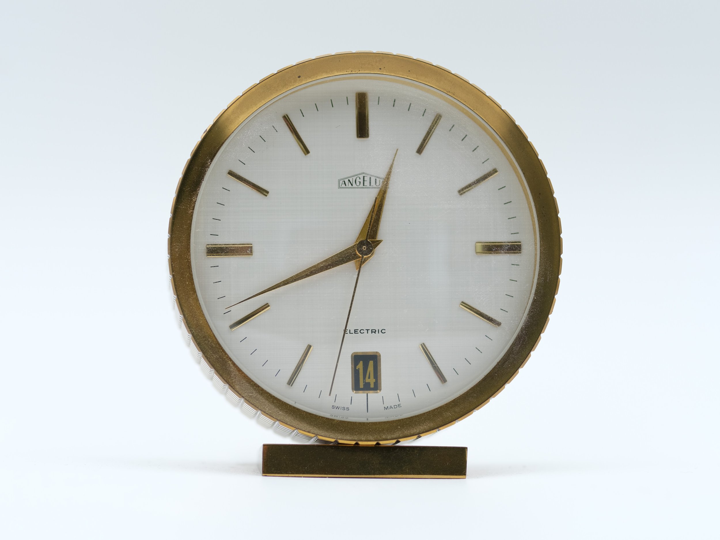 Bijzonder leuke elektrische klok van Zenith met als opschrift: “De juiste tijd” in het Duits. VERKOCHT.