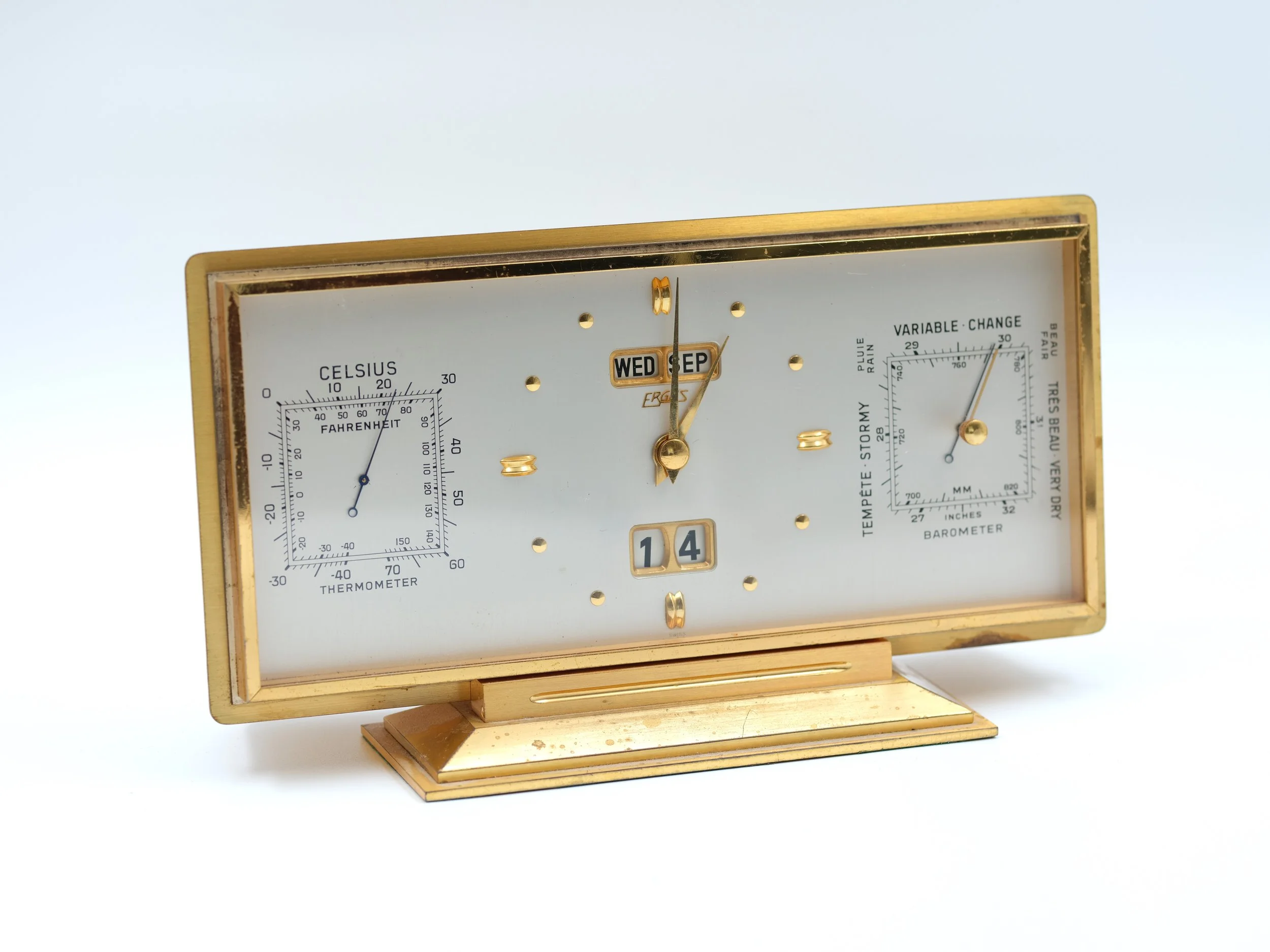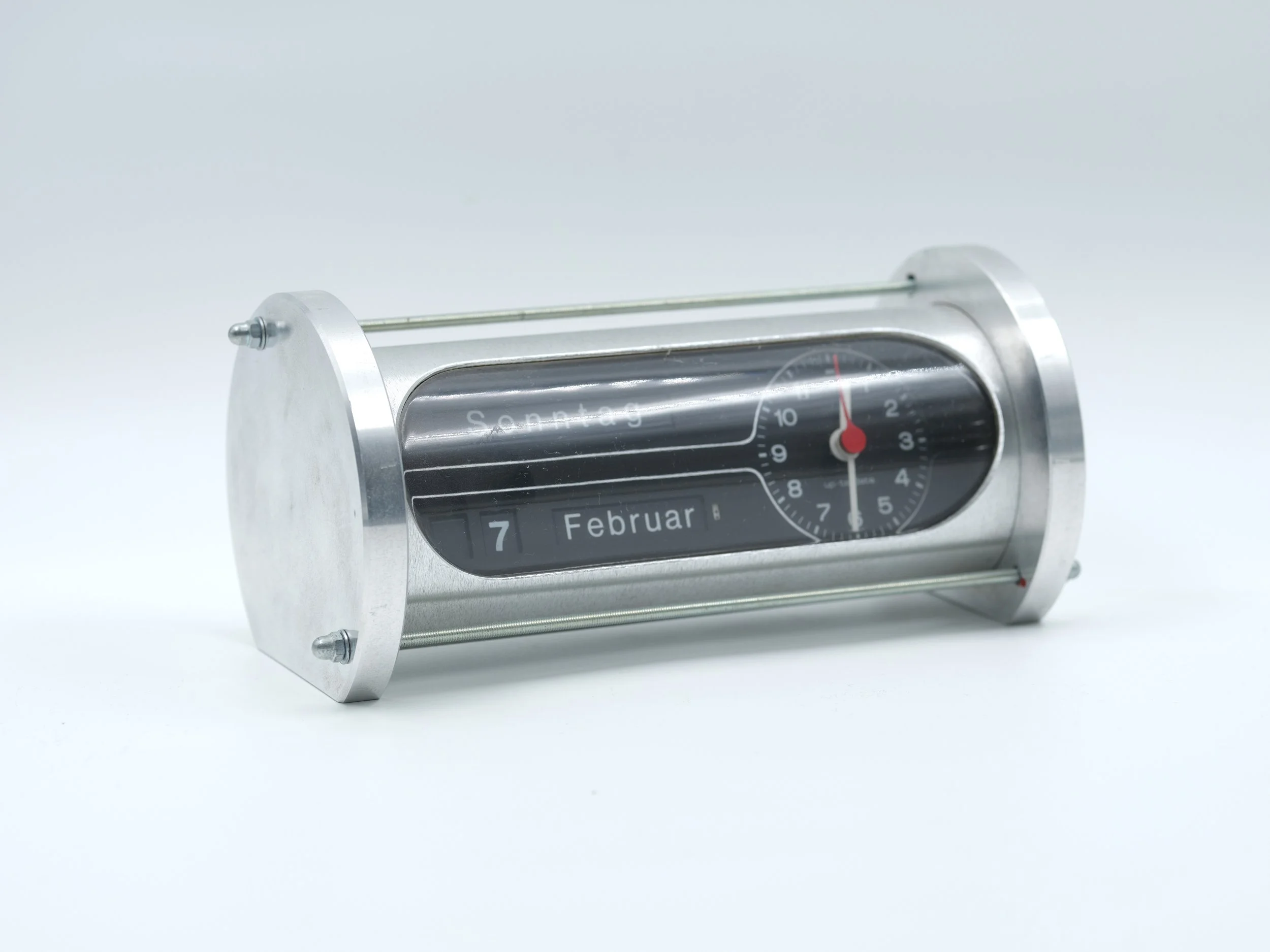 Datum, dag, uur. Interessant opwind uurwerk elektrisch.