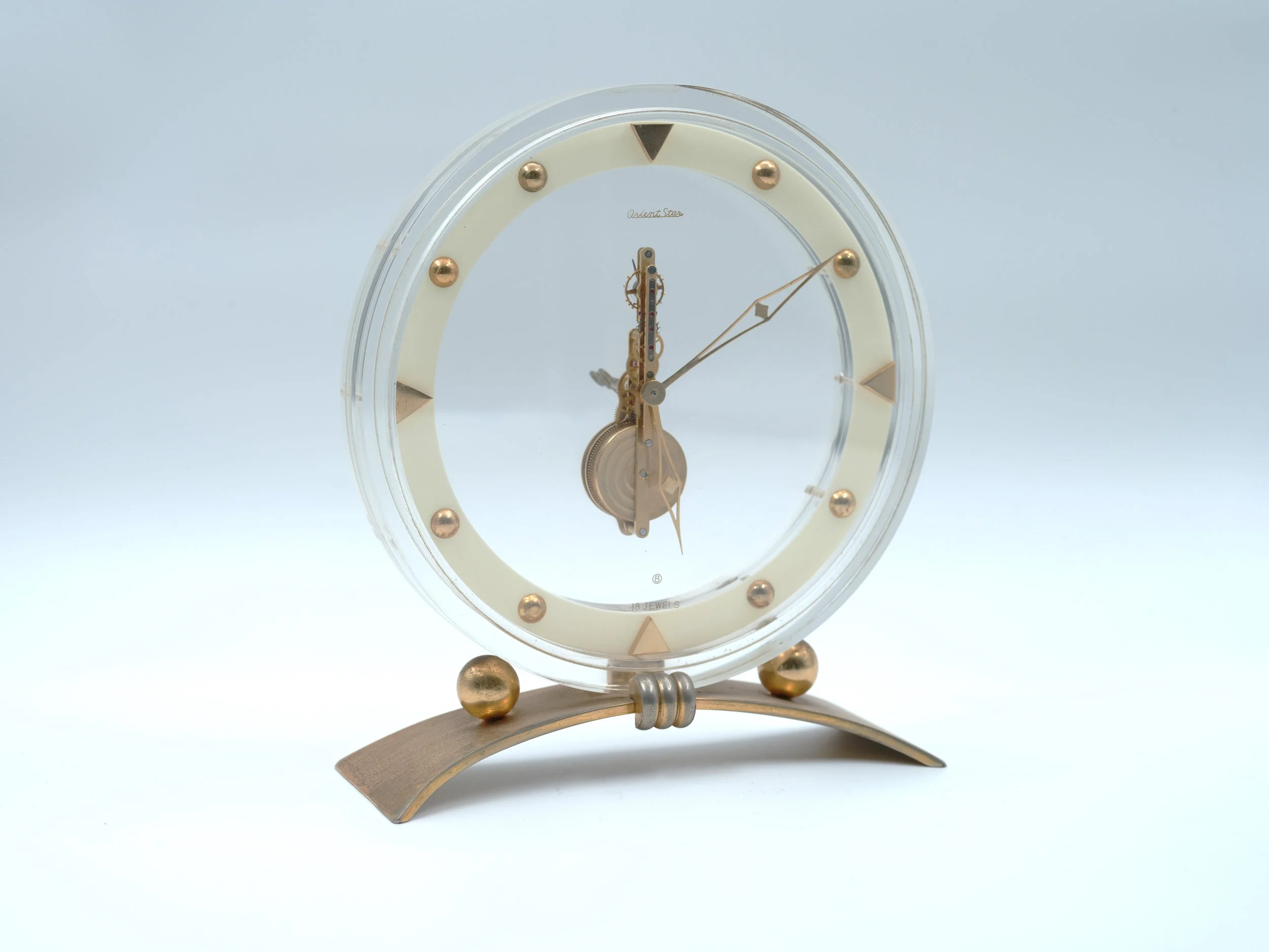 Eerste quartzklok van Junghans met uniek groot quartz kristal. (zie ook item 001) .VERKOCHT.